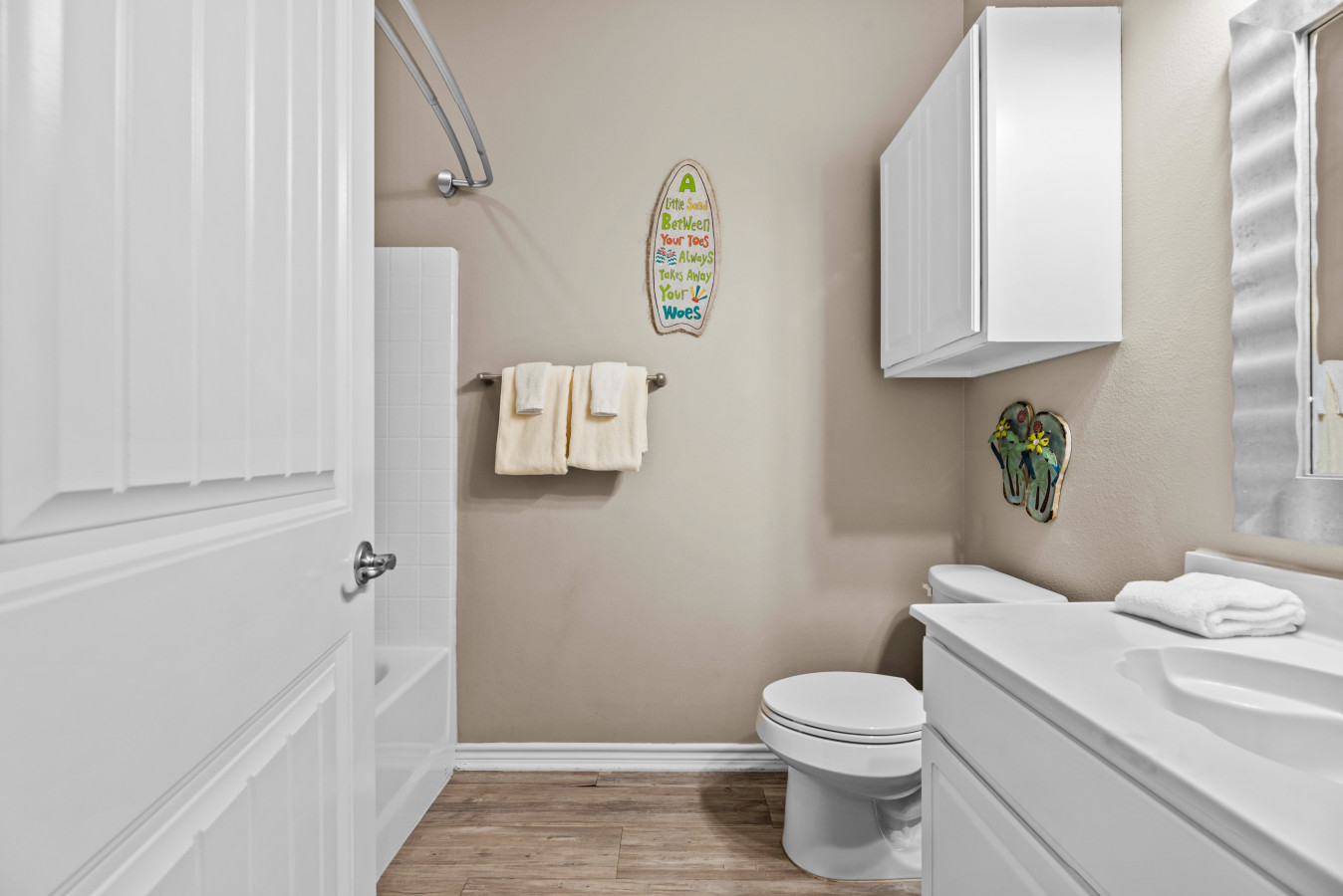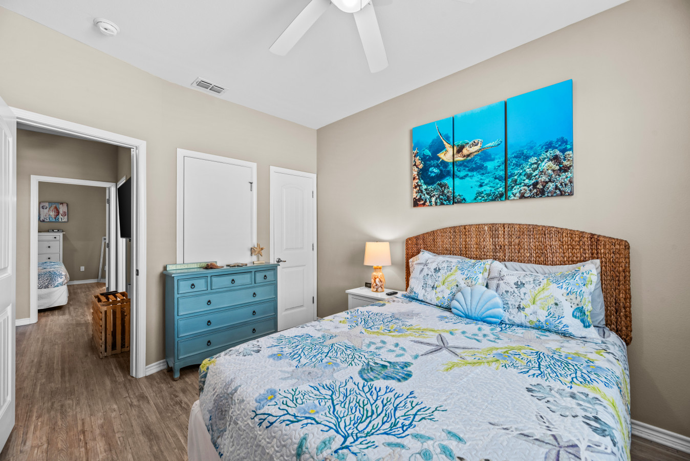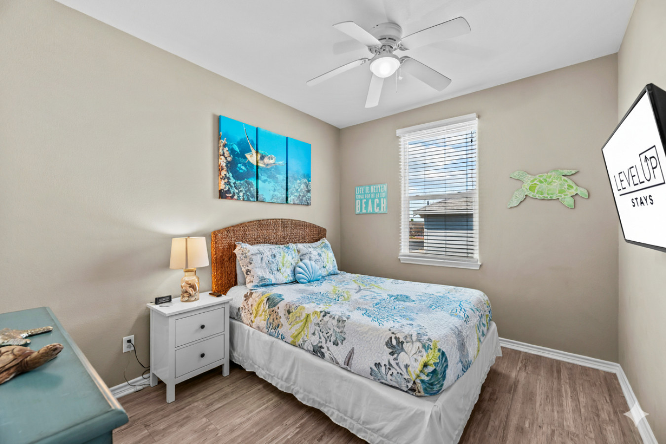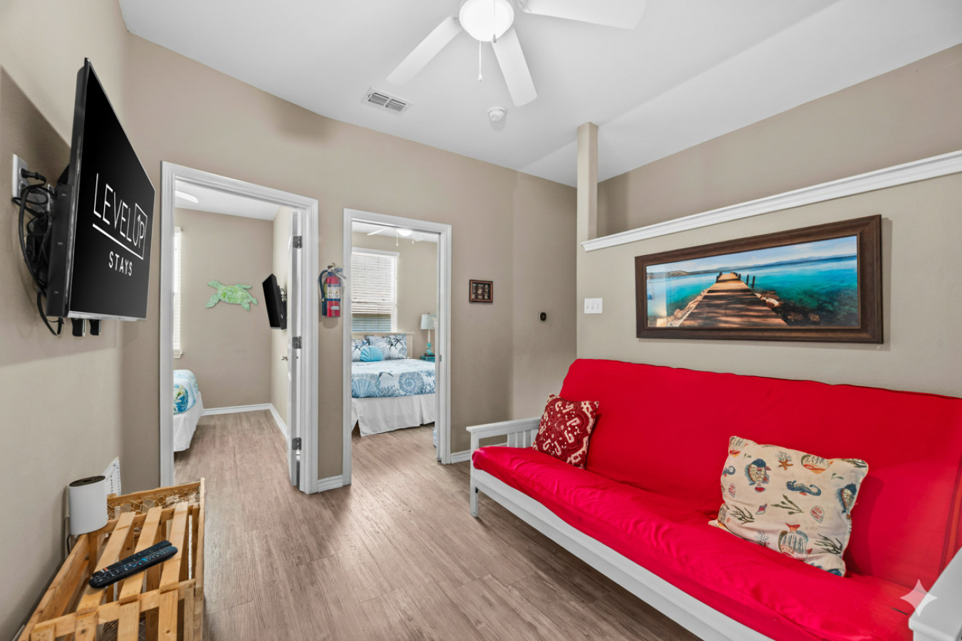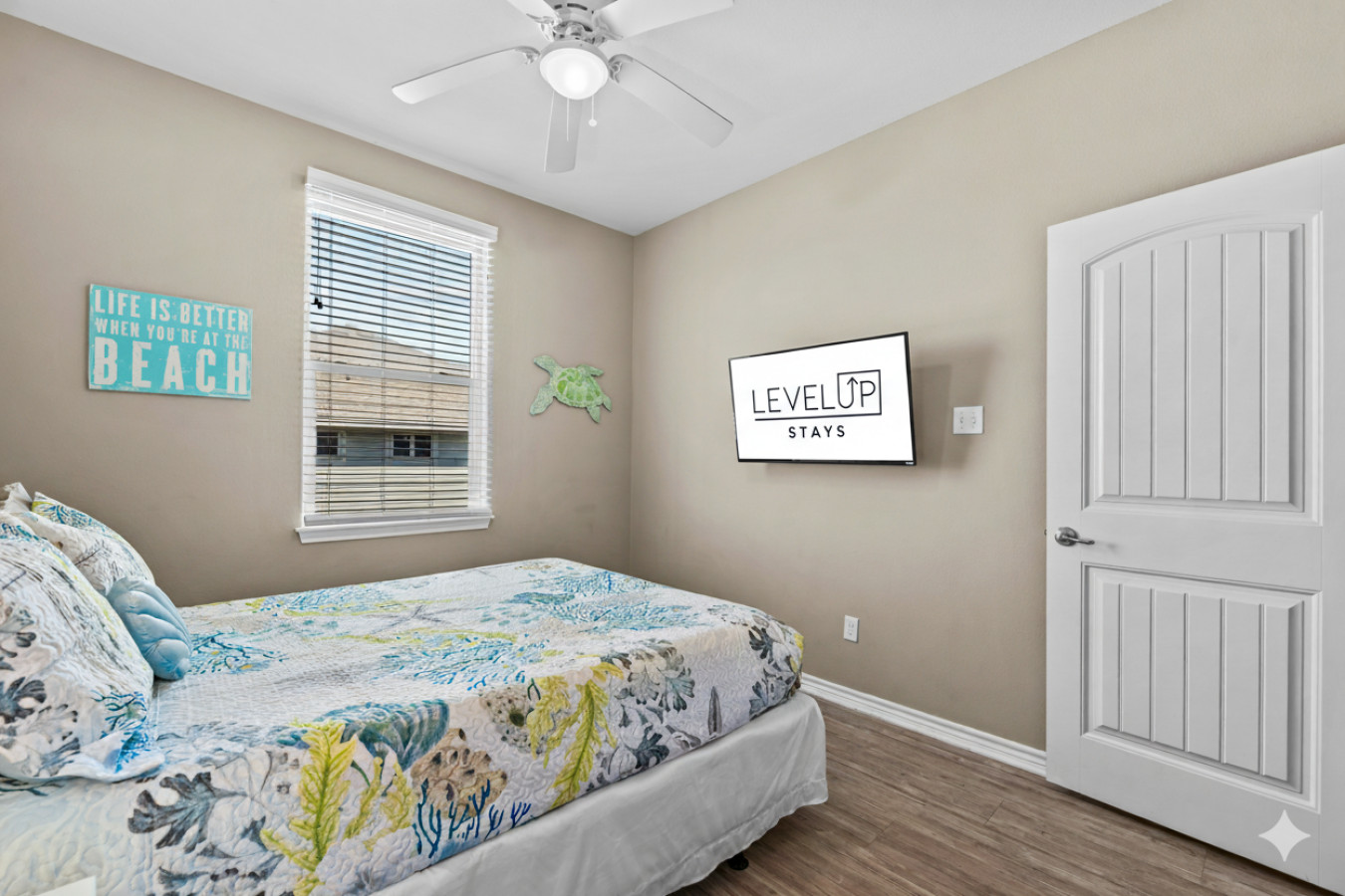 The main level offers a queen bedroom with a smart TV, ideal for guests preferring easy access. Upstairs, a relaxed loft with a sofa and TV sits between three serene queen bedrooms, including a master suite. Each room is designed with relaxation in mind, dressed in soft hues and seaside accents that echo the rhythm of the waves. With plenty of space and amenities, you’ll have everything you need to unwind, reconnect, and make lasting memories.