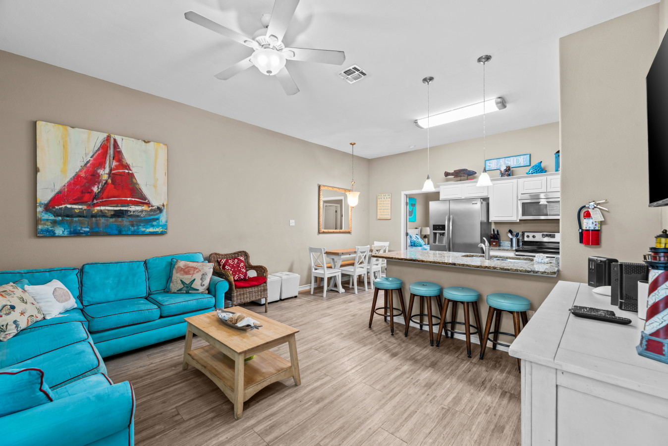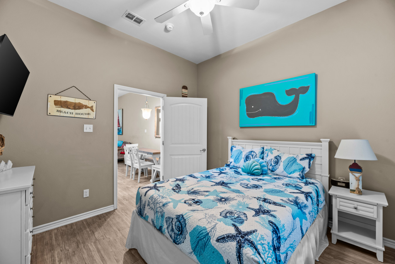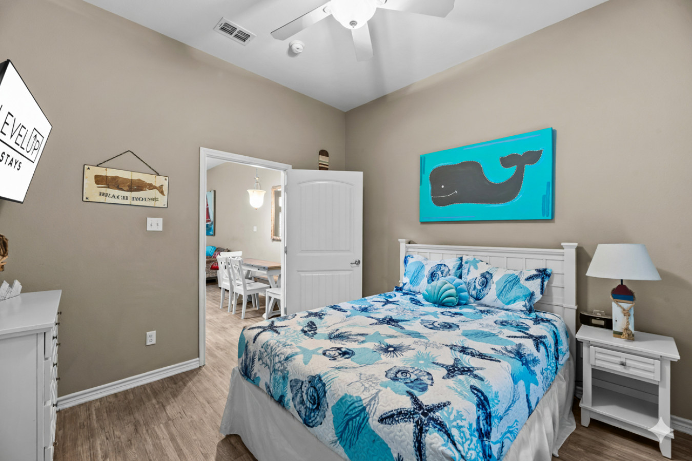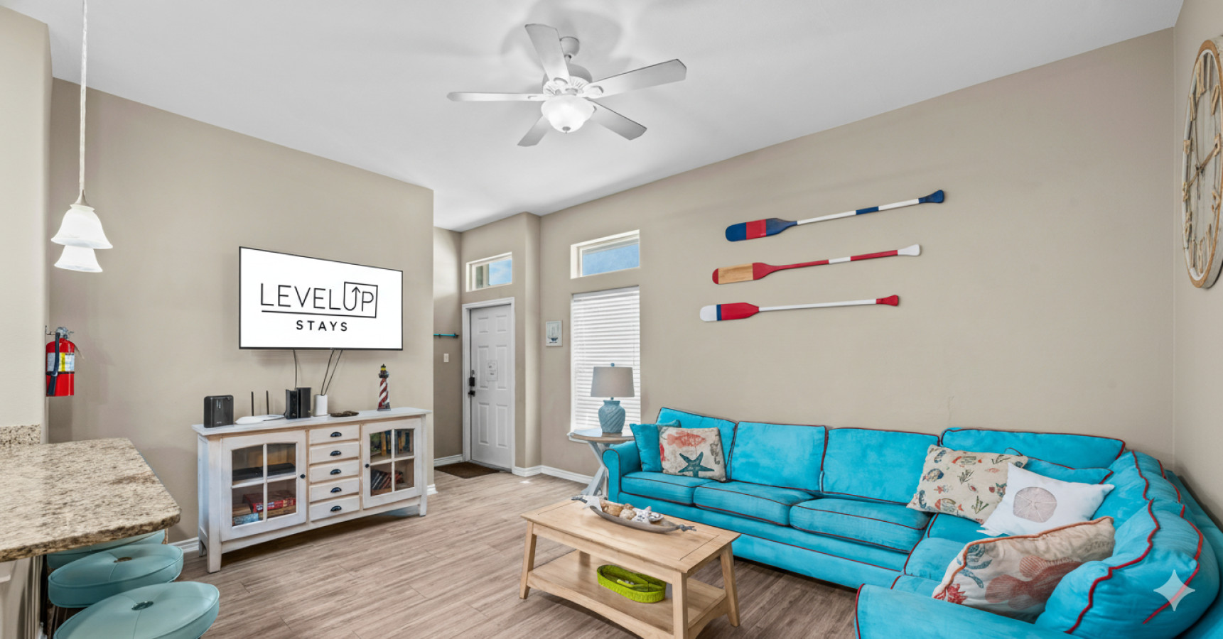 At Costa Bella, you’ll feel the coastal charm the moment you walk through the door. The open living area glows with natural light and beach-inspired décor, creating a welcoming space to relax after a day in the sun. Enjoy your favorite shows on the smart TV, or whip up fresh seafood in the fully equipped kitchen while chatting with friends across the breakfast bar.