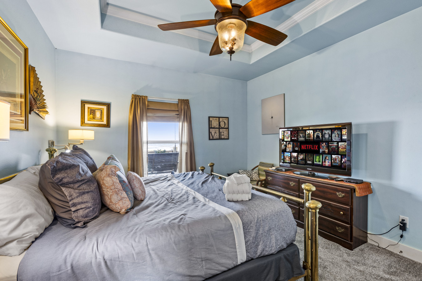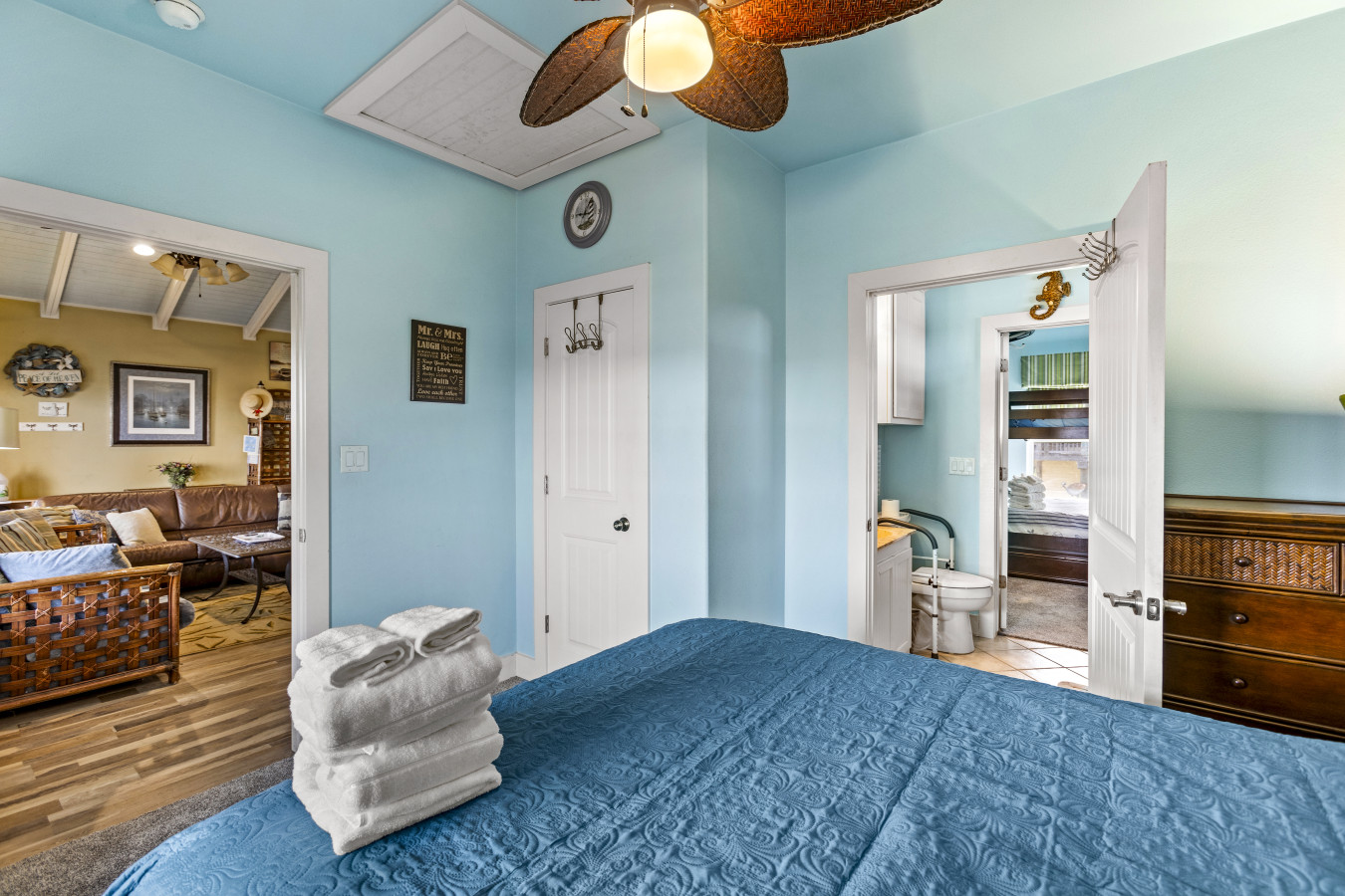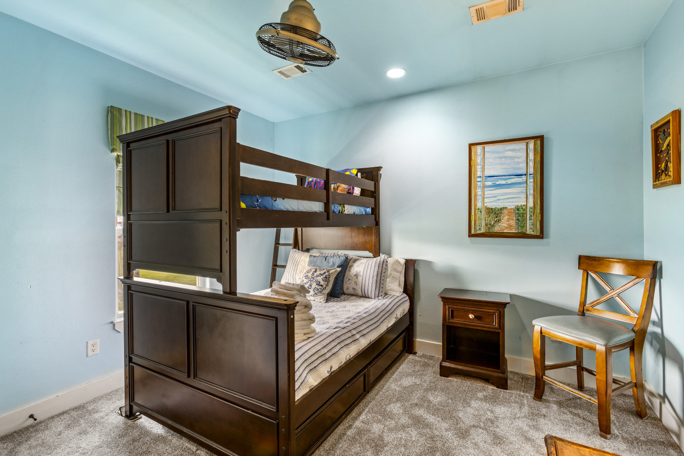 You'll find four thoughtfully arranged bedrooms designed to help everyone recharge. The primary bedroom features a king bed and peaceful ambiance, while a second bedroom includes a fun twin-over-full bunk bed with pull out trundle, perfect for kids or friends. A third bedroom offers another cozy queen bed along with a smart TV for personal entertainment, and the fourth bedroom features a full bed and its own smart TV for relaxing in privacy.