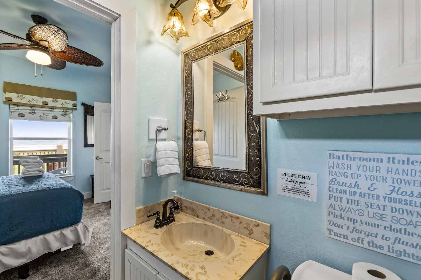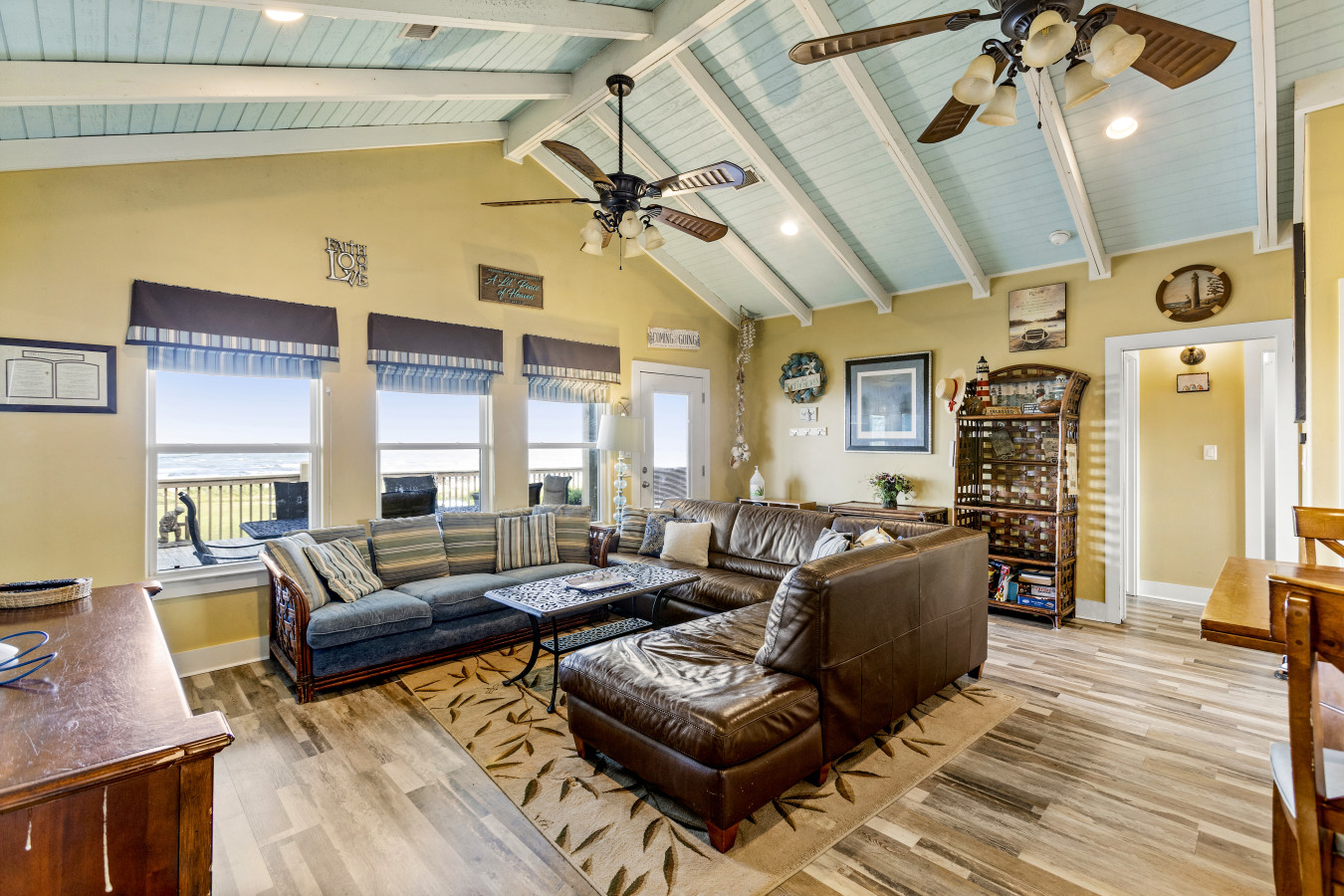 • Deck Views & Swing: Soak in ocean breezes and pastel evening skies from the wrap-around deck and relaxing sofa swing.