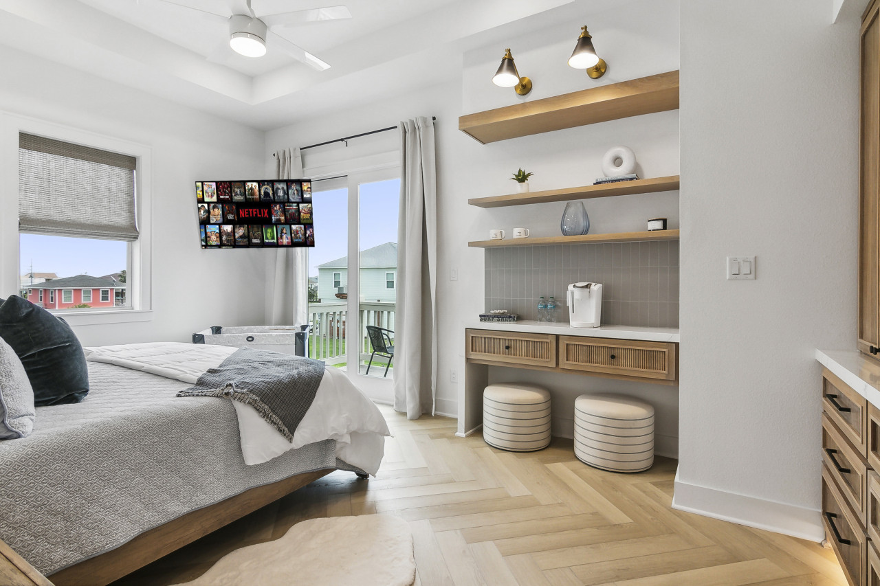 This house was absolutely amazing! Super spacious with 4 comfy queen beds, 1 king, and 2 oversized couches that could easily sleep 4 more. The bathroom had a rainfall-style shower and felt like a spa. The kitchen was fully stocked with tools, great counter space, an all-in-one oven and air fryer, and a coffee setup for drip, pour-over, Keurig, or your own beans. The deep sink made prep and cleanup easy. Living area was super cozy even at 6’3”, I had room to stretch out! Beach gear was all there: chairs, games, even leftover charcoal. We walked to the beach (just 2 blocks!) and grabbed daiquiris at Bust-A-Lime. Ferry to Galveston was quick and fun. We barely had to leave the house it was that well-stocked. We were absolutely blown away by this stay with Level Up Stays.