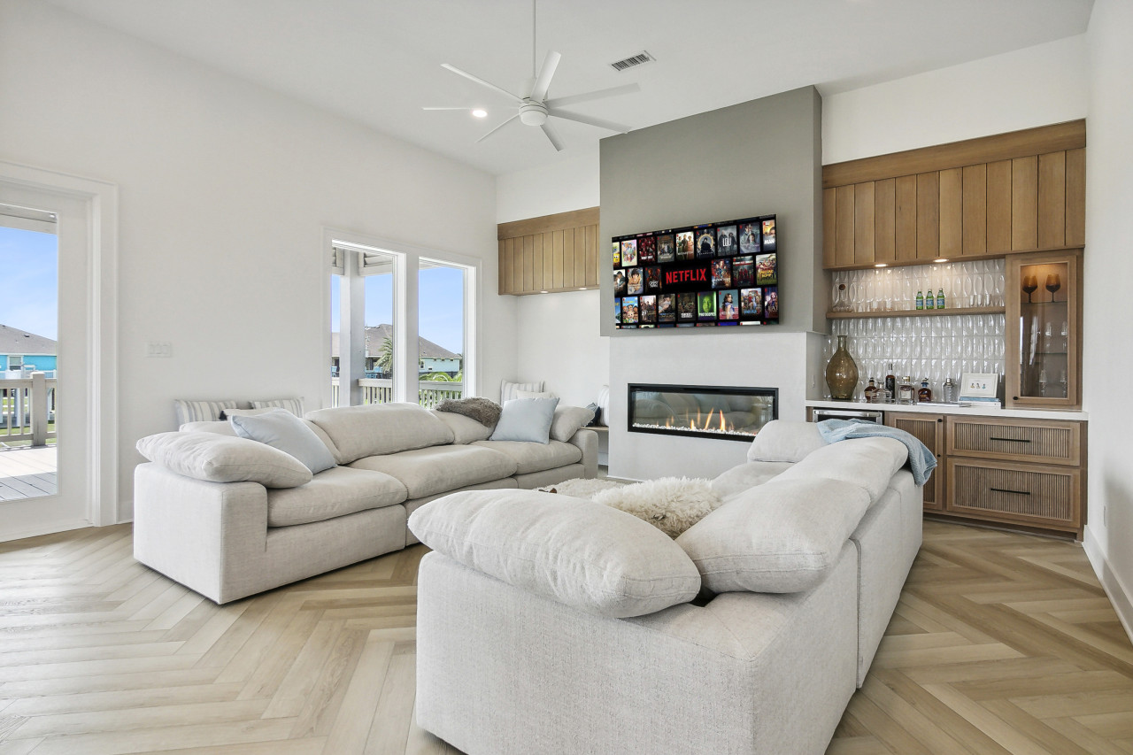 Sea Le Vie is designed with your comfort and enjoyment in mind. The fully stocked kitchen includes a full-size fridge, electric stove/oven, microwave, dishwasher, and all the essentials like a Keurig coffee machine with coffee pods, olive oil, salt, and pepper. Gather in the living room, where a huge flatscreen smart TV, two cozy couches, a wine bar with a mini refrigerator, and a variety of board games await.