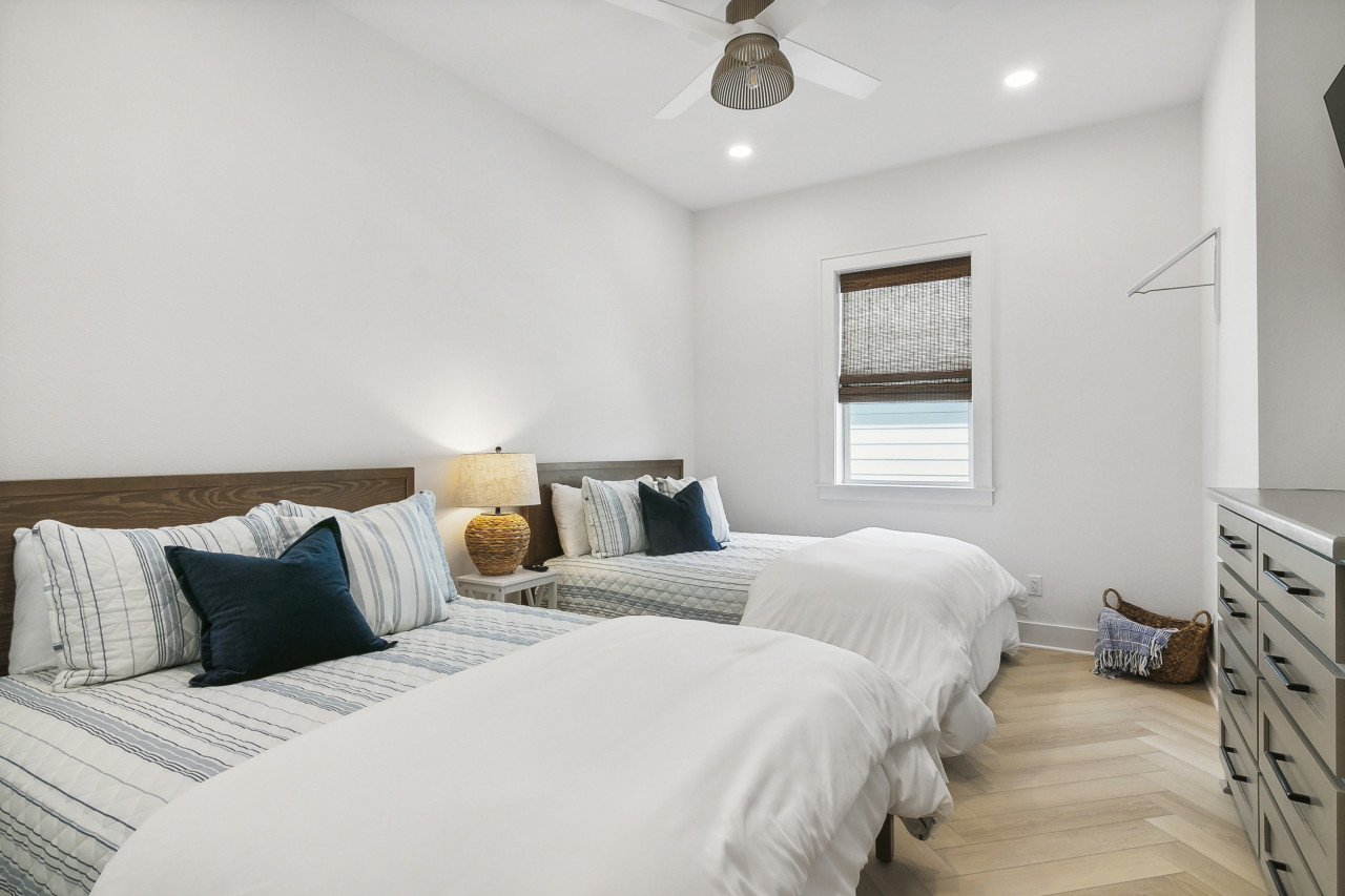 -Third Bedroom : Two queen beds with a full bathroom just outside in the hallway