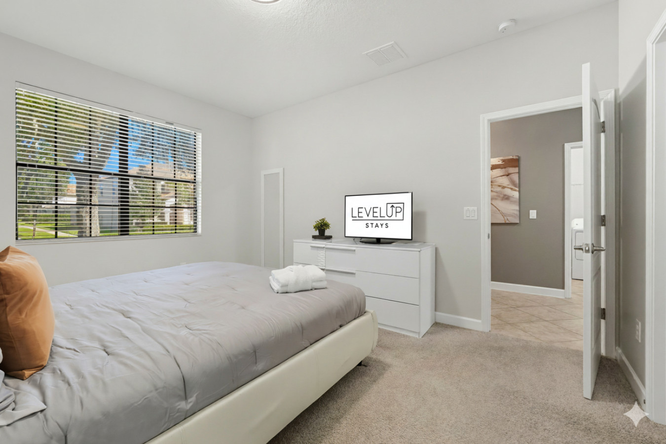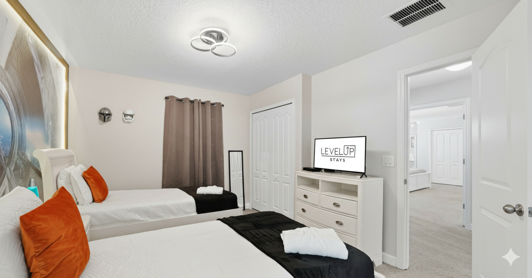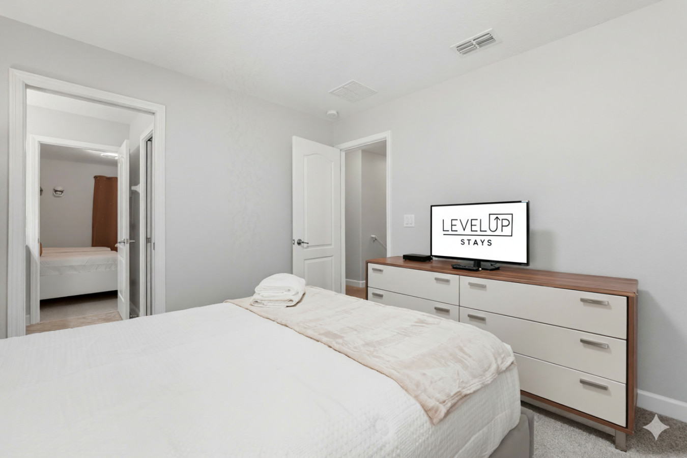 • Bedrooms with plush bedding, blackout curtains, and Smart TVs