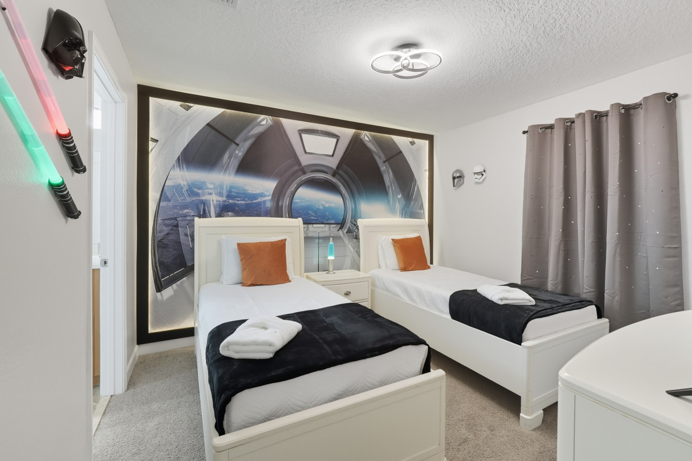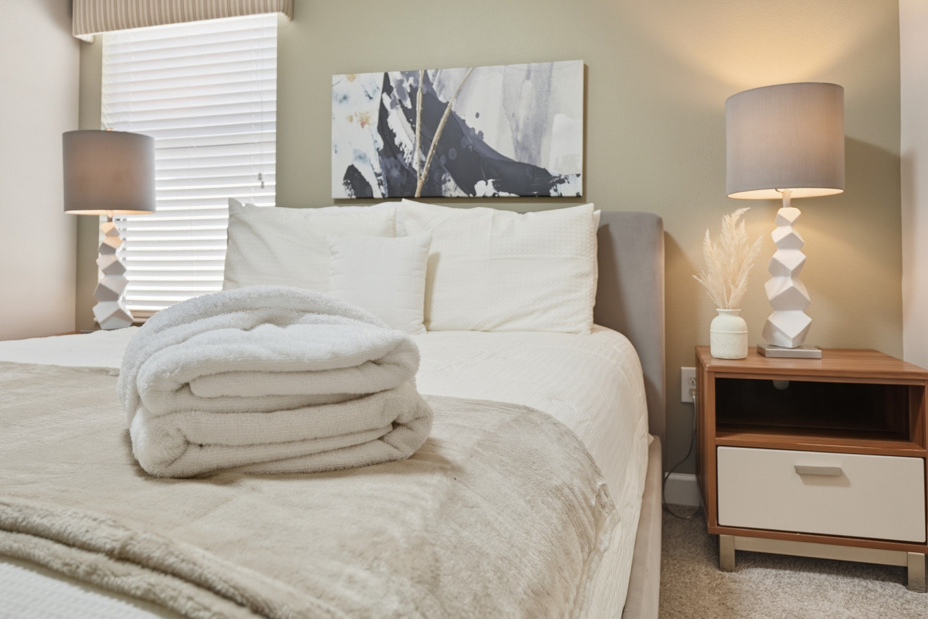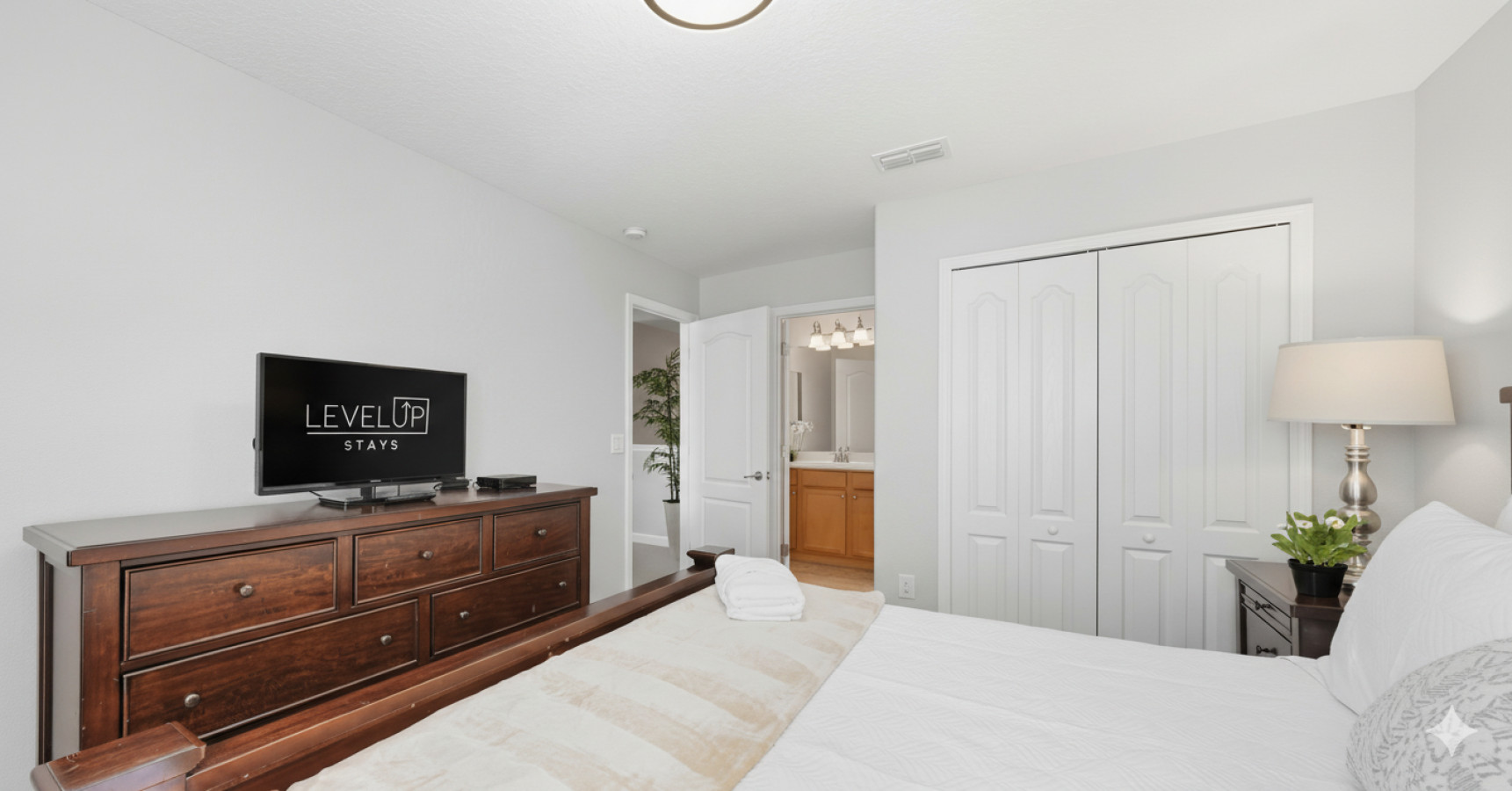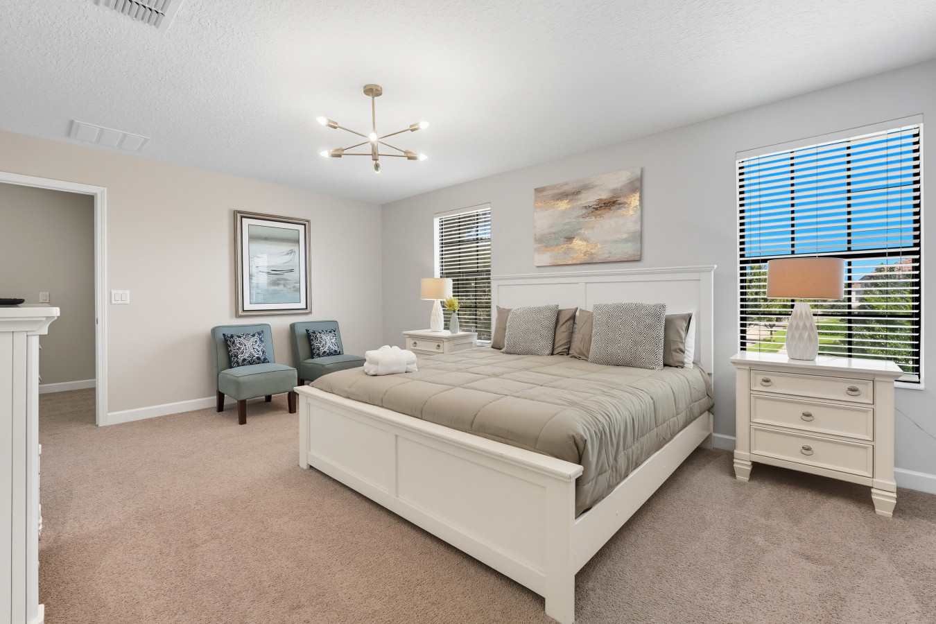 • Bedrooms with plush bedding, blackout curtains, and Smart TVs