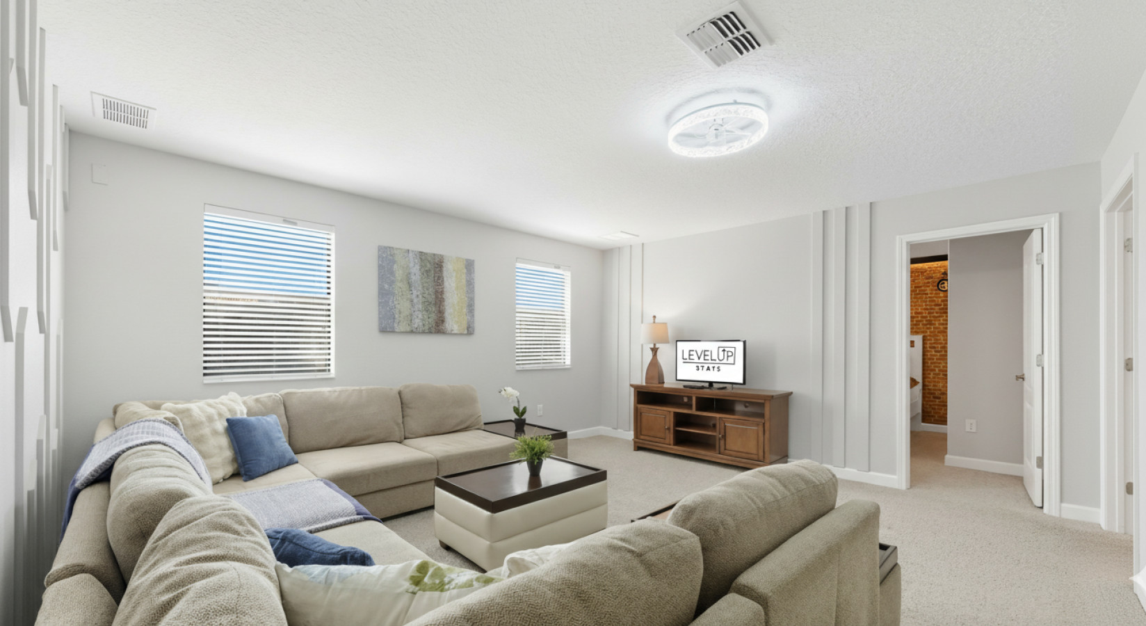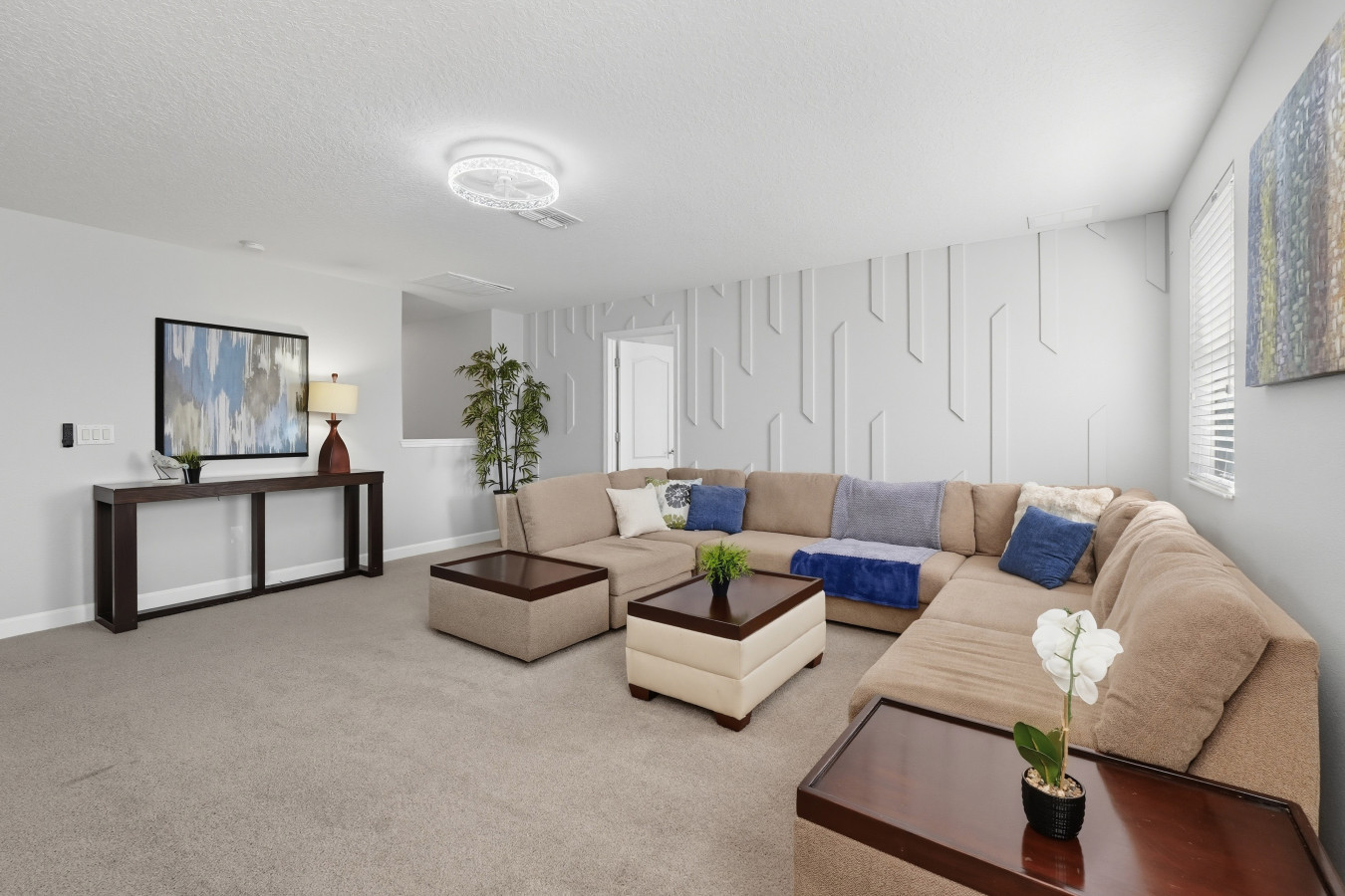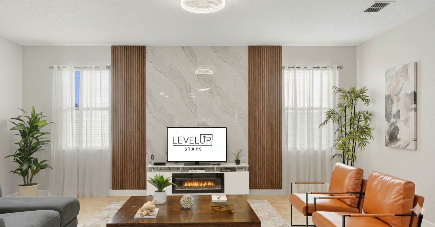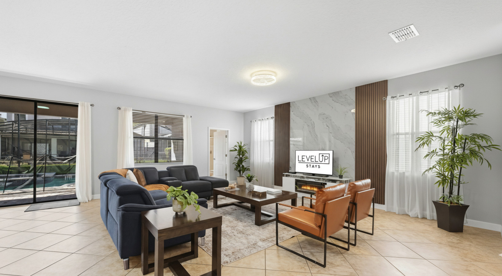 From the moment you step into Moonlight Villa, you’ll feel right at home. The open-concept living space invites you to relax after a day of adventure, whether you’re gathering on the plush couches for movie night or enjoying a family meal prepared in the fully equipped kitchen. Every detail has been designed with your comfort in mind, from blackout curtains to Smart TVs in every bedroom.