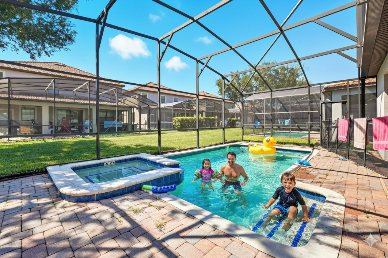 You’ll love unwinding in your own private screened pool and spa, or dining al fresco while the kids splash and play. When you’re ready for more fun, ChampionsGate Resort offers endless activities—float down the lazy river, sip cocktails at the tiki bar, or let the kids burn off energy at the splash zone and arcade. There’s something here for everyone in your group to enjoy.