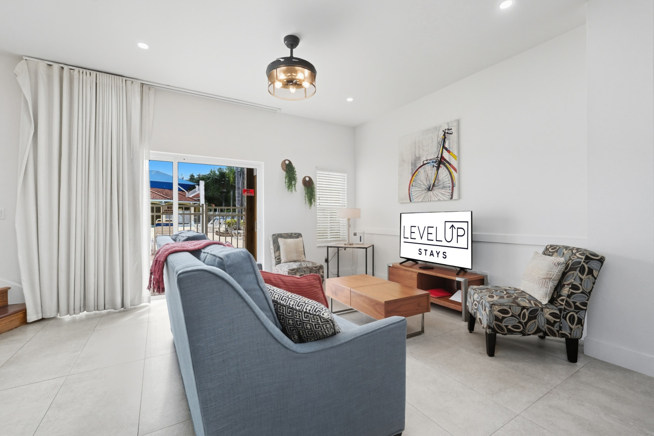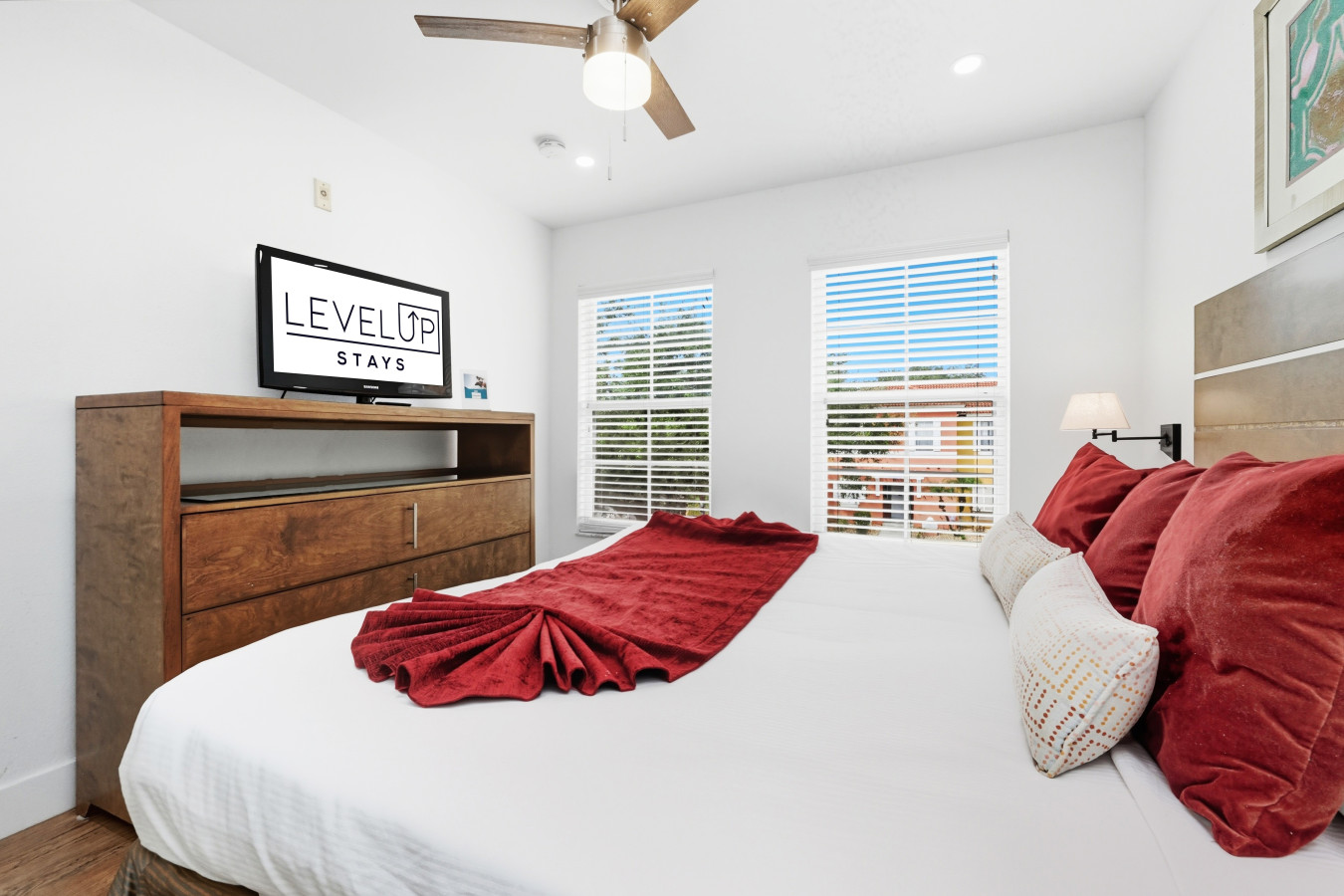 Upstairs, retreat to three inviting bedrooms, each with its own smart TV so everyone can relax in their own way. The primary suite includes an ensuite bathroom and a private balcony, creating a peaceful spot to enjoy your morning coffee or evening wind-down. With multiple bathrooms, everyone has space to get ready without waiting.