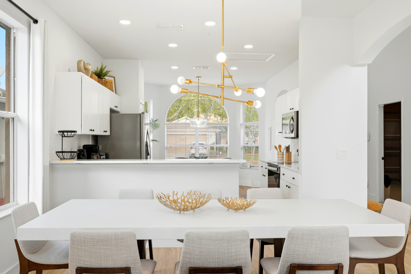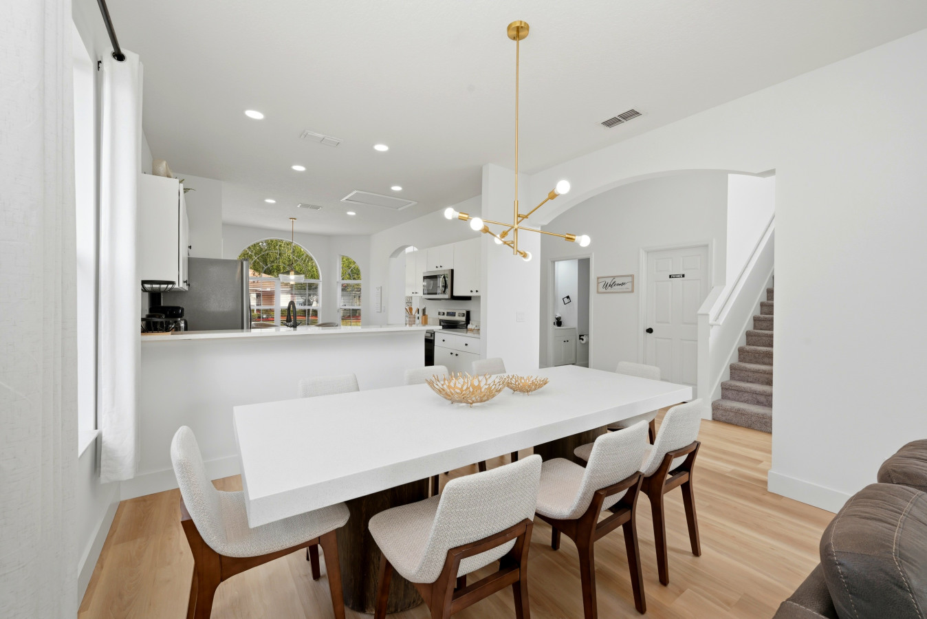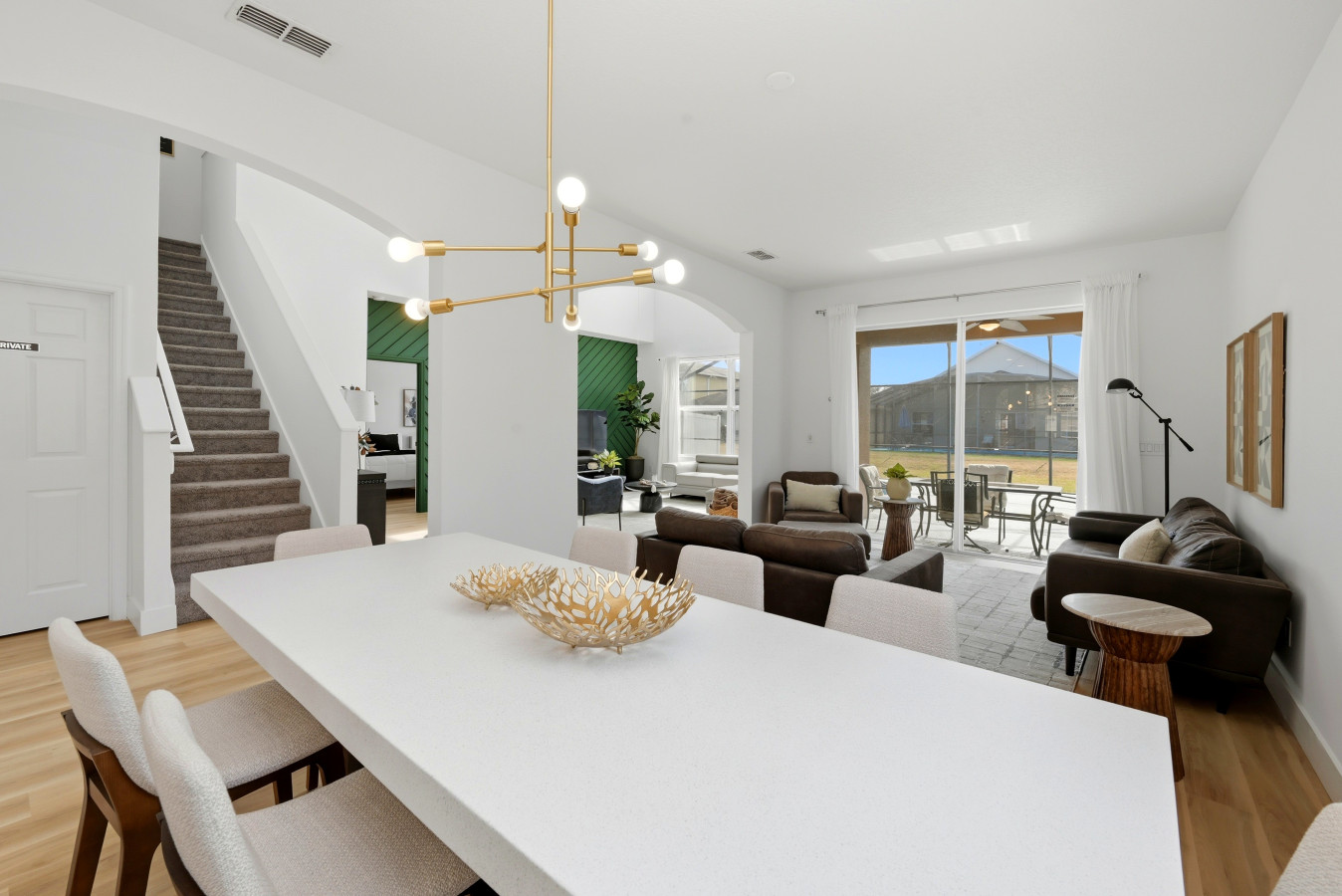 Your kitchen is modern, spacious, and ready for everything from quick breakfasts before the parks to late-night snacks after a full day of fun. The dining area is perfect for family meals, celebrations, or planning your next adventure while everyone stays connected in one open, inviting space.
