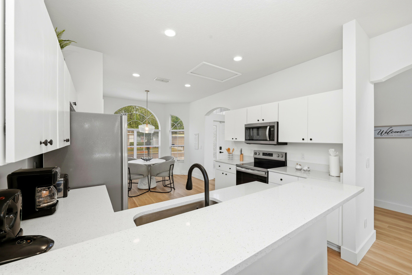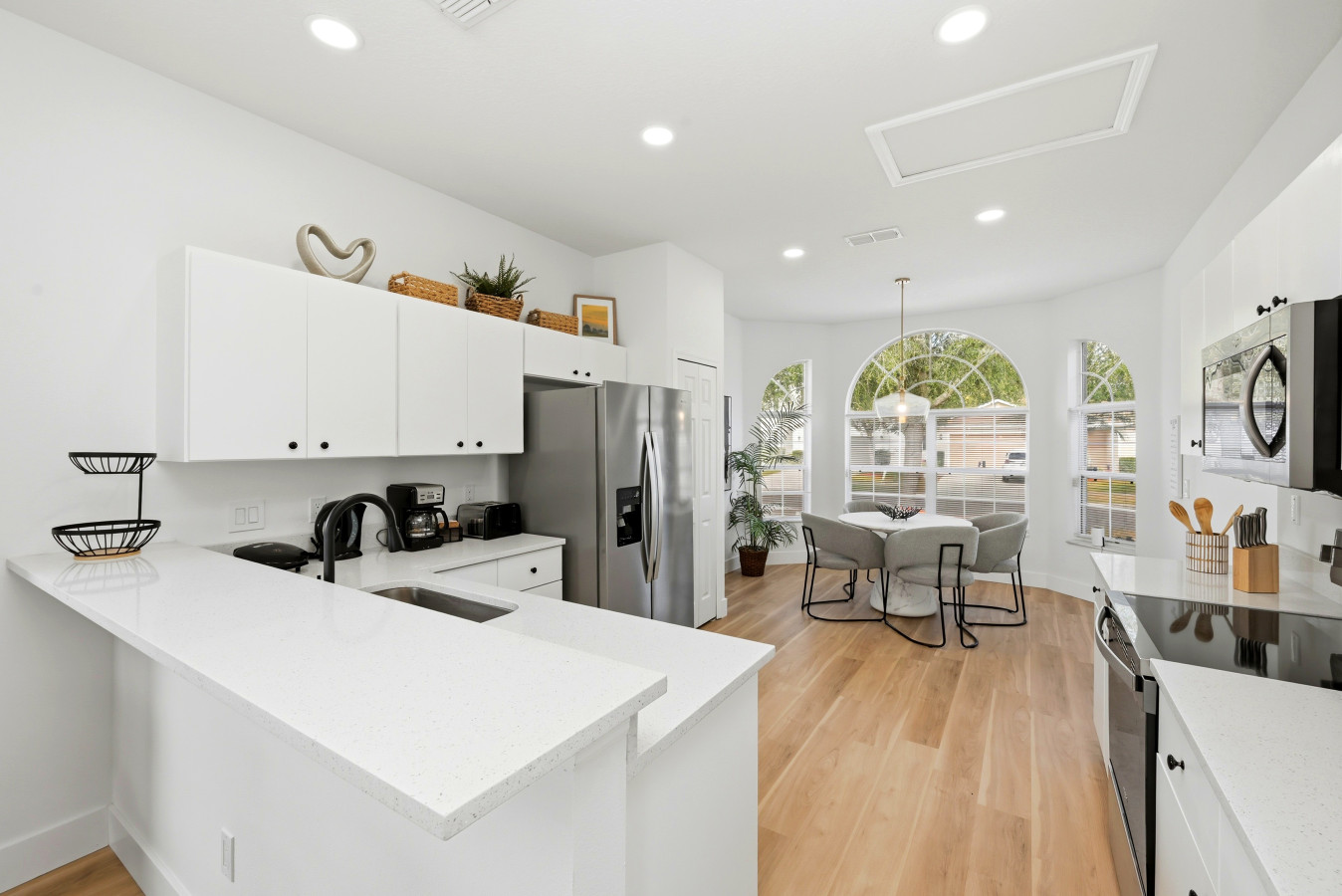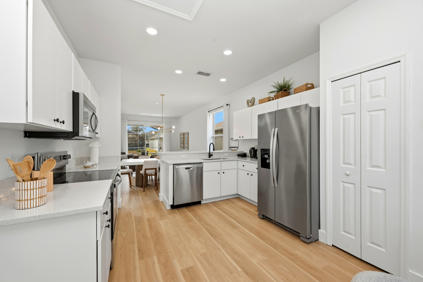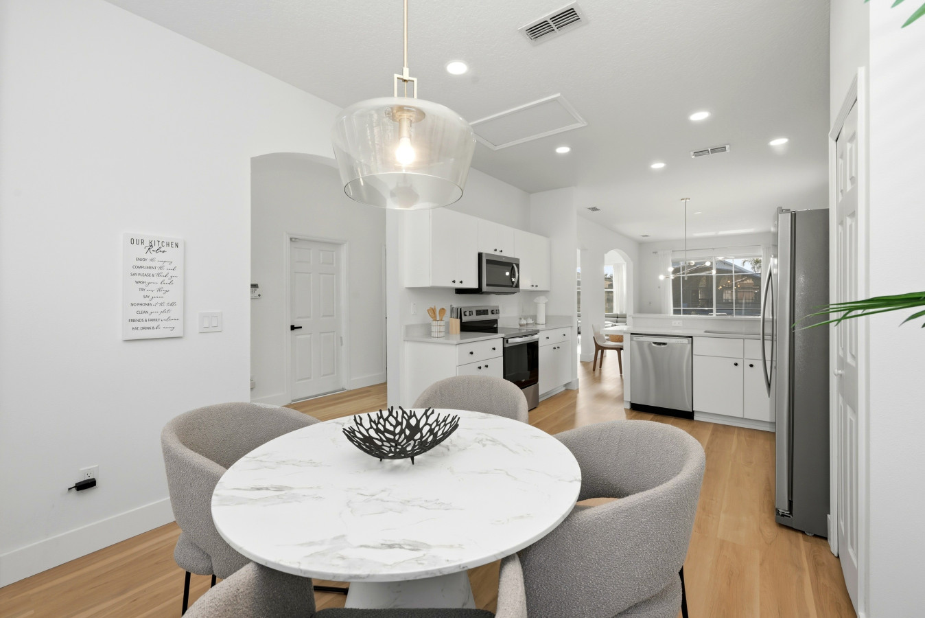 Your kitchen is modern, spacious, and ready for everything from quick breakfasts before the parks to late-night snacks after a full day of fun. The dining area is perfect for family meals, celebrations, or planning your next adventure while everyone stays connected in one open, inviting space.