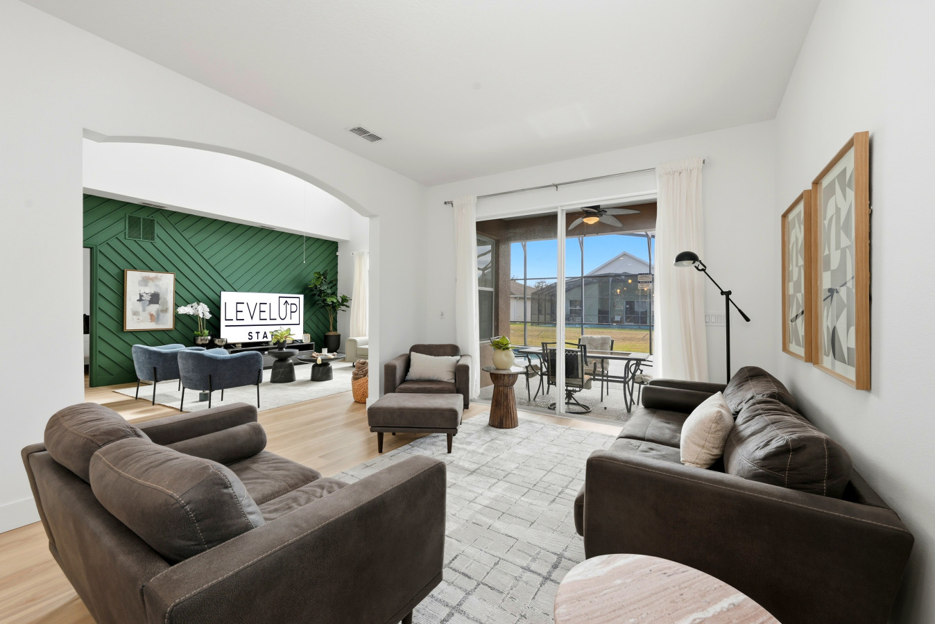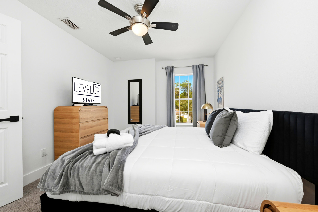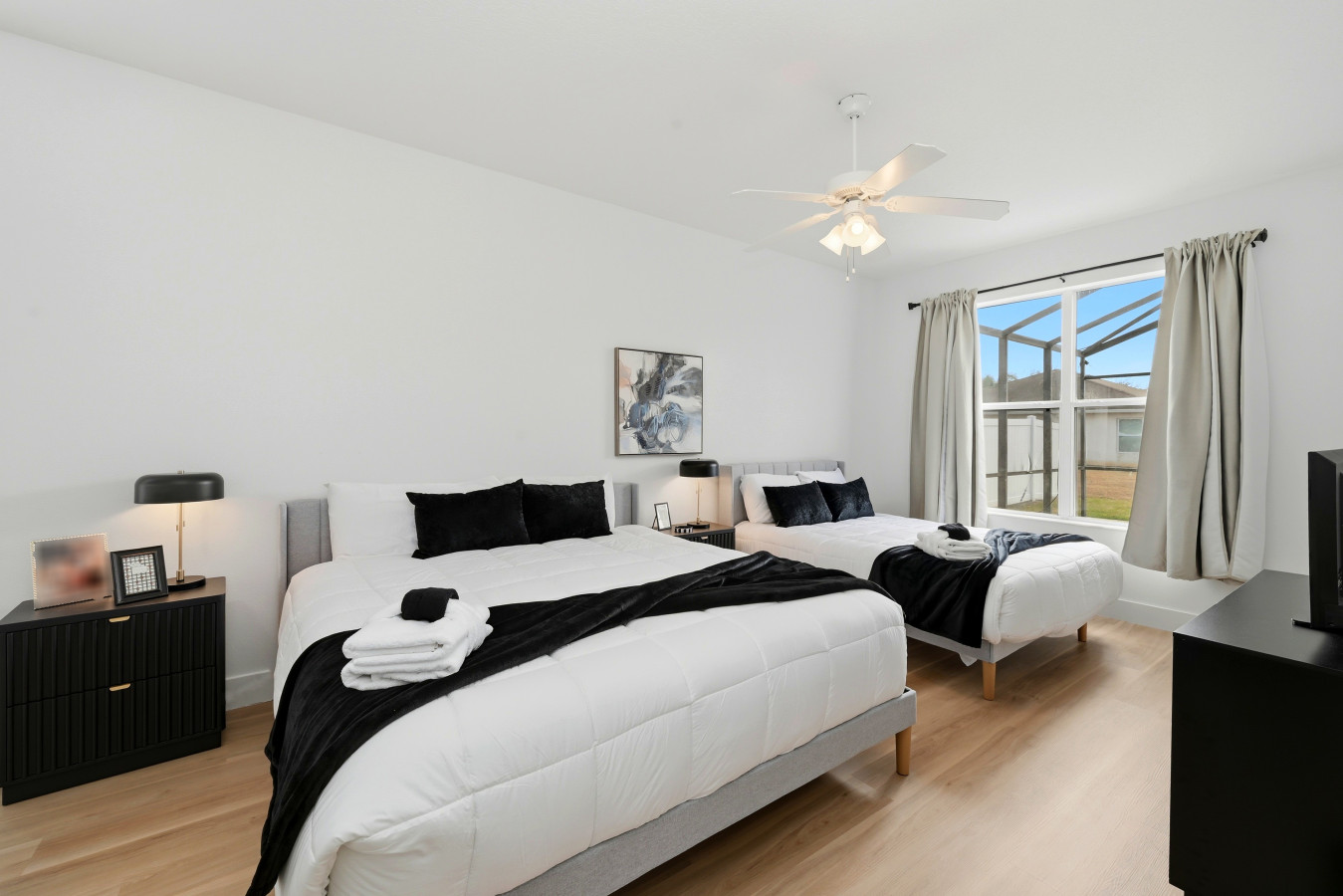 Welcome to Bright Haven! Your sunny Kissimmee getaway, minutes from the magic and made for relaxing in style. You’ll love the soaring ceilings, modern open layout, designer dining space, and a private screened pool for warm Florida days. With fun themed rooms and comfy beds for everyone, this home is perfect for families and groups!