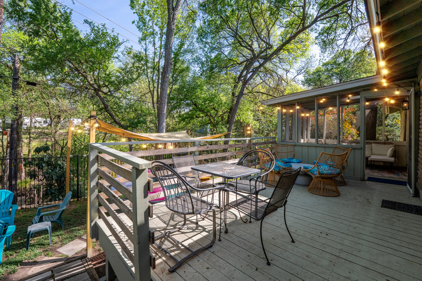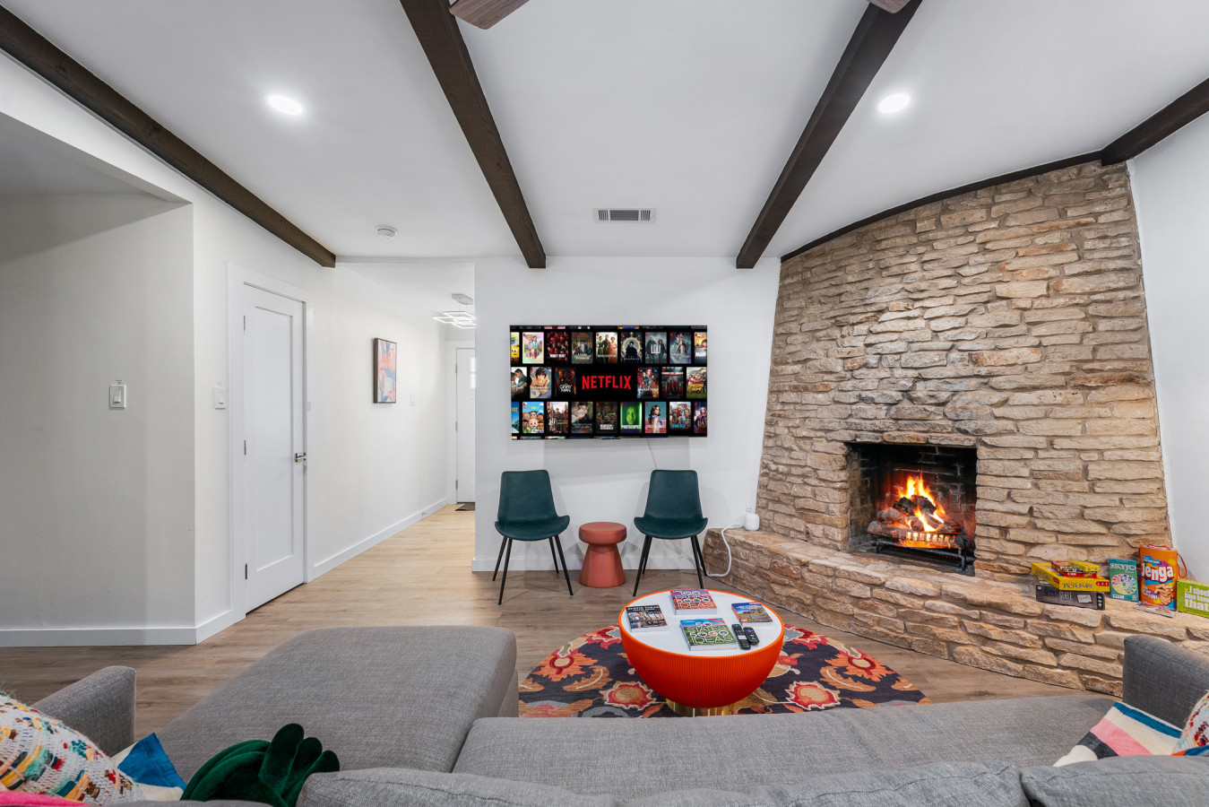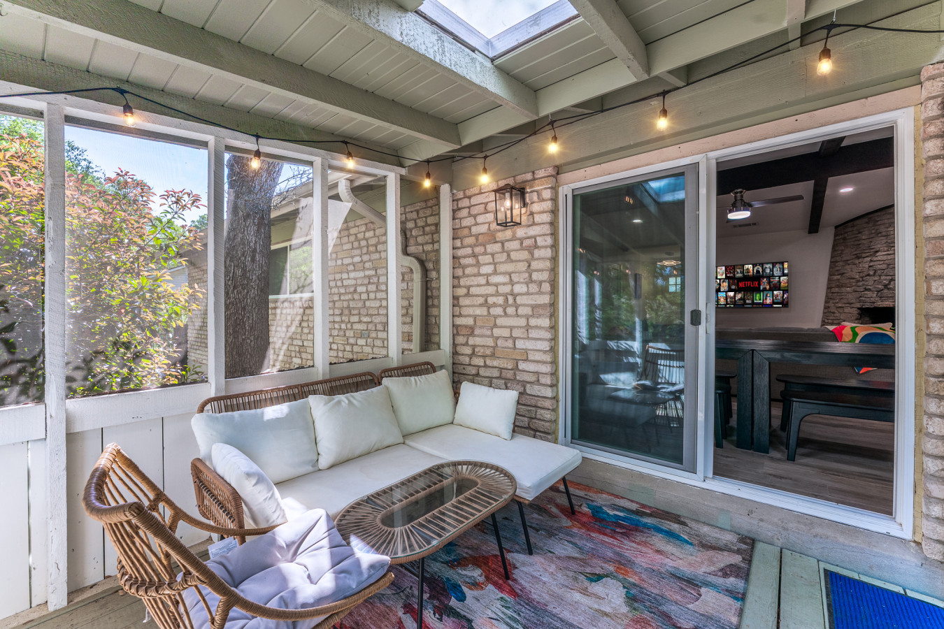 From the moment you step inside, you’ll feel right at home in this spacious and inviting retreat. The open-concept living area is designed for relaxation and connection, featuring cozy seating, a large smart TV, and fast WiFi for all your streaming and work needs. The fully stocked kitchen makes meal prep a breeze, with modern appliances, plenty of counter space, and all the essentials you need to whip up your favorite dishes. Gather around the dining table for a family meal, or take your food outside to enjoy Austin’s beautiful weather on the enclosed porch. Whether you're sipping your morning coffee or grilling up a feast, the outdoor space is perfect for unwinding.
