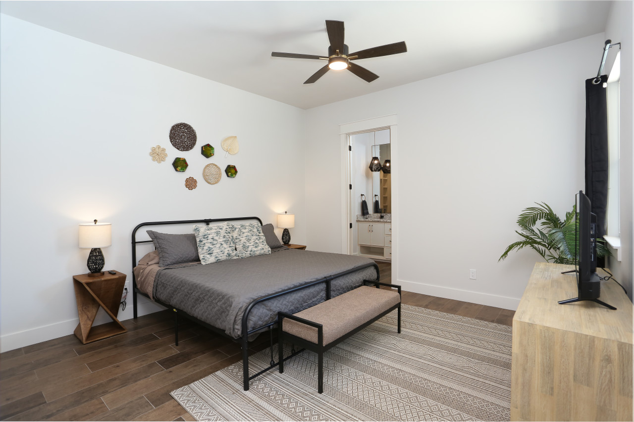 Bedroom 1: King bed with ith an attached bathroom with a huge walk in shower and double vanities.