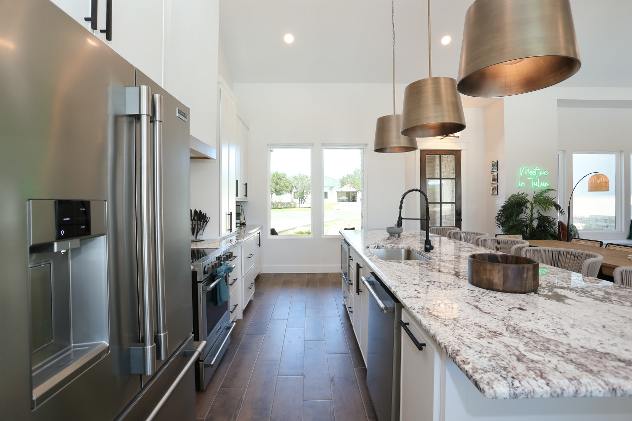 Inside Tulum, you’ll find a big, cozy living room with a leather sectional and an 85" Smart TV for watching movies and shows. The kitchen is perfect for cooking, and it even has a coffee bar with pods to make your mornings better. Each bedroom has its own bathroom, so everyone has their own space.