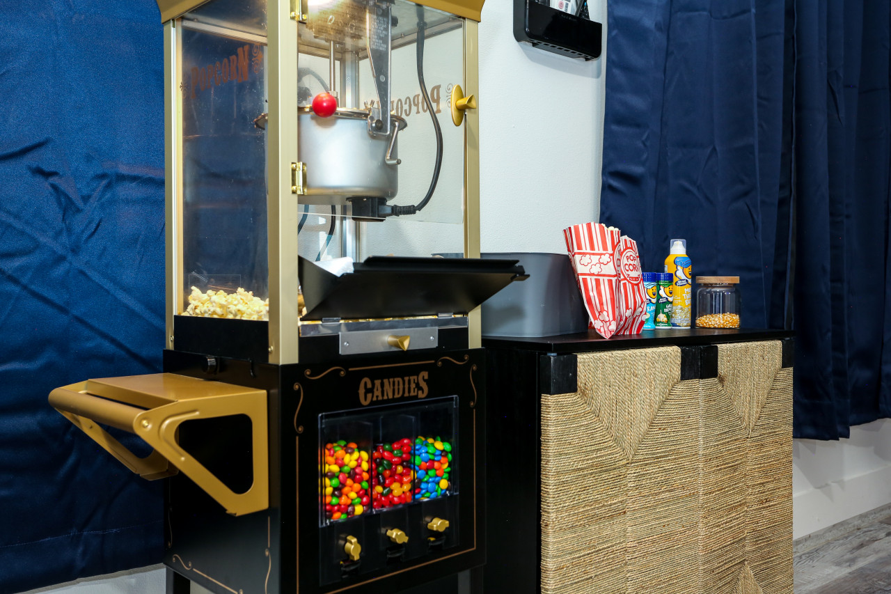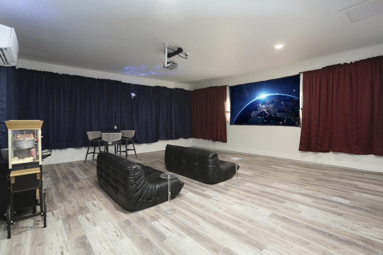 • Relax under 100,000 stars in the full movie theater with a 120" projector, sound bar, popcorn machine, candy (provided)