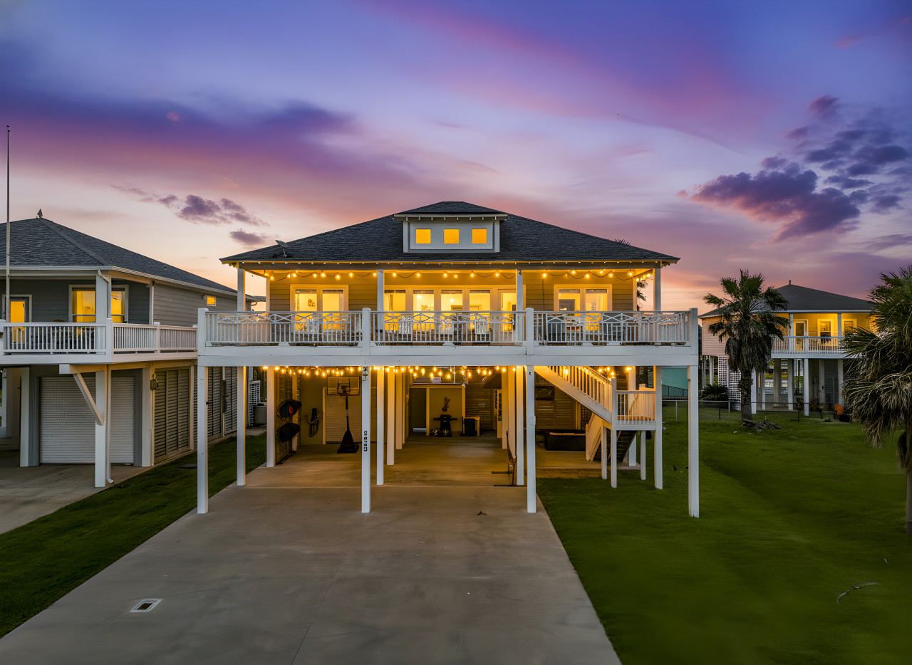 Welcome to La Bella Vista, your elevated coastal escape in Crystal Beach where stunning sunset views and laid-back beach vibes set the tone. This bright, spacious home is perfect for gathering, with breezy interiors, open living spaces, and inviting outdoor hangouts. Enjoy morning coffee on the deck, afternoons by the beach, and evenings under string lights. Relax, unwind, and experience effortless coastal living just minutes from the shore.