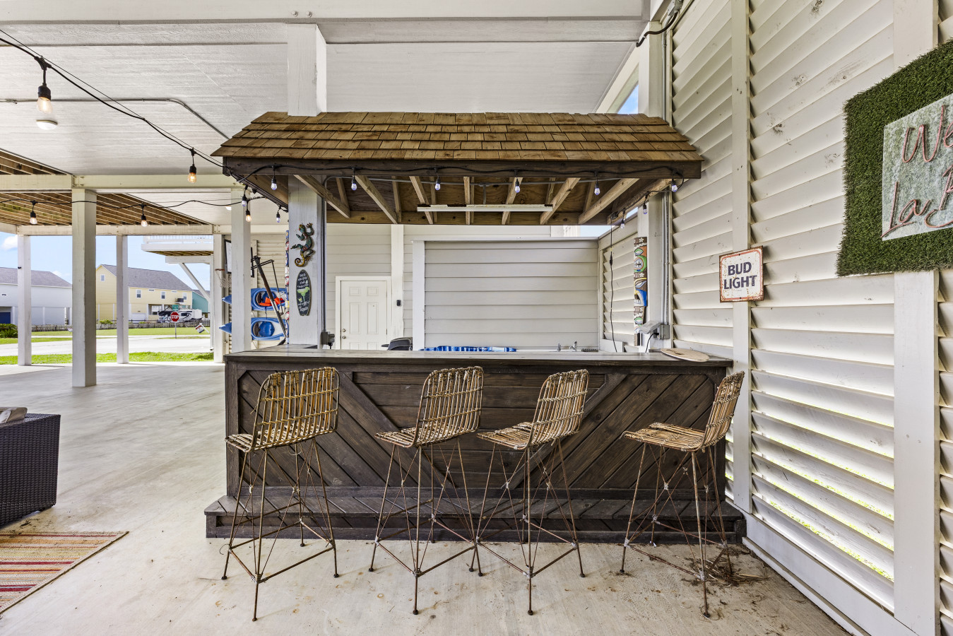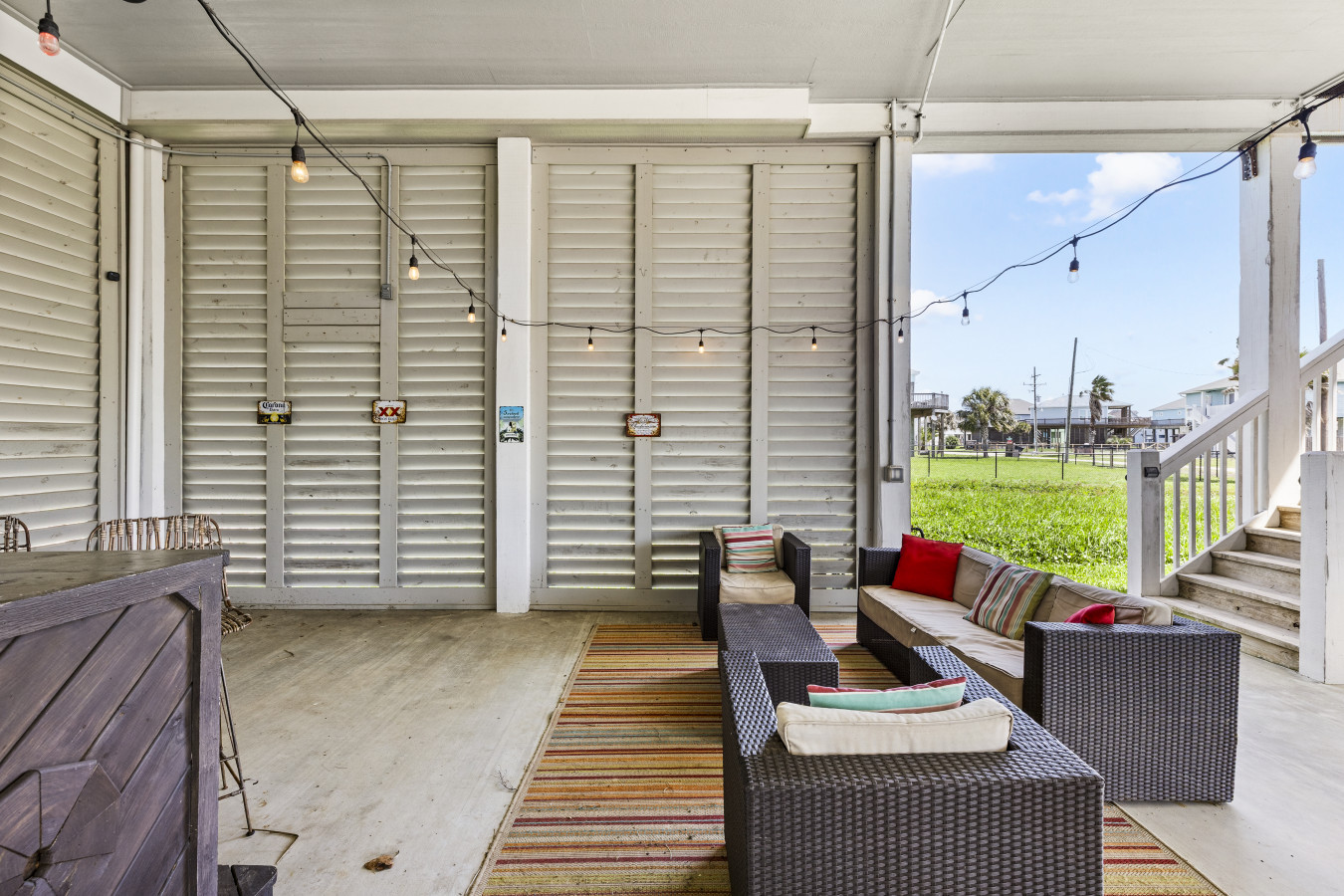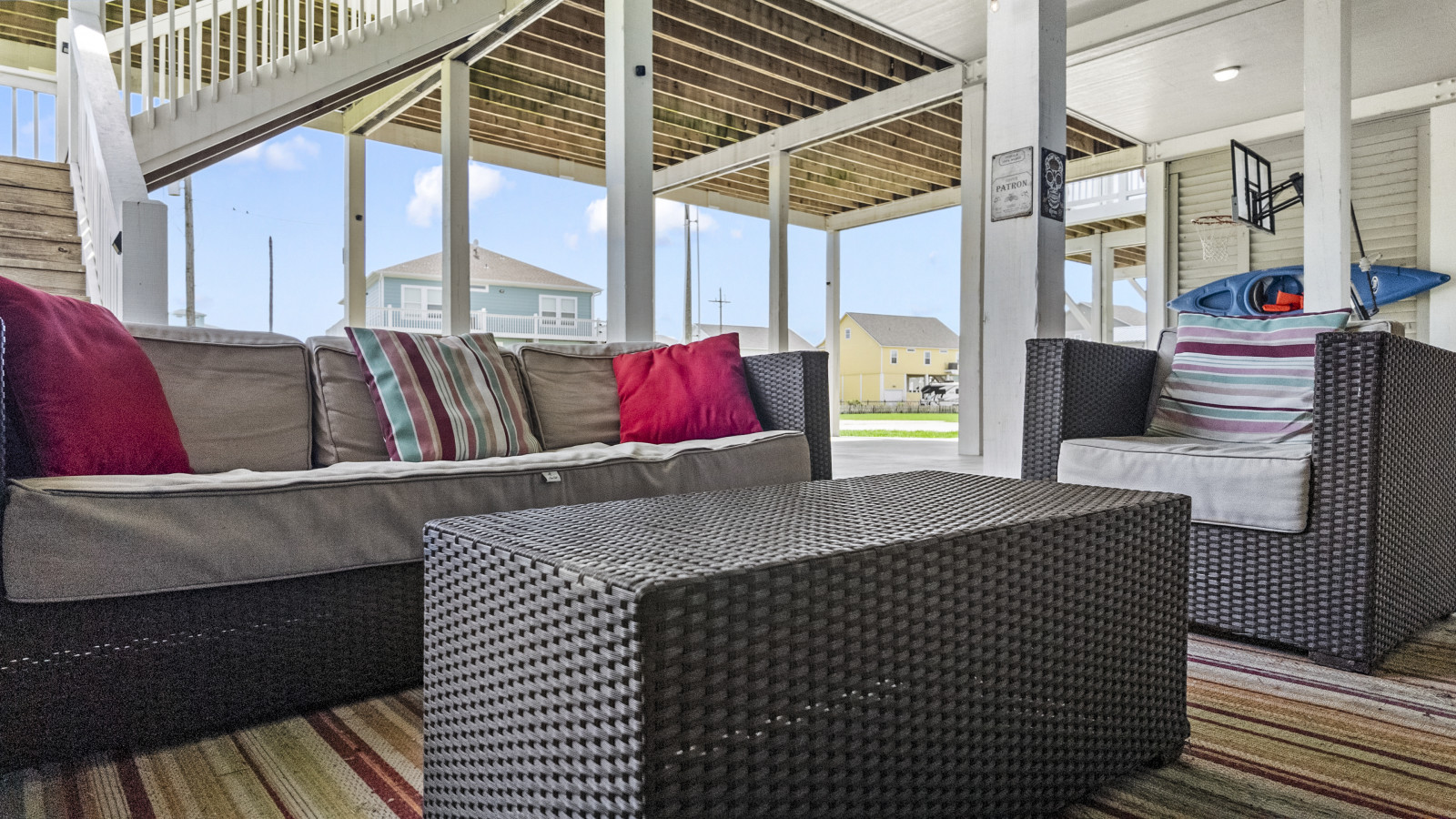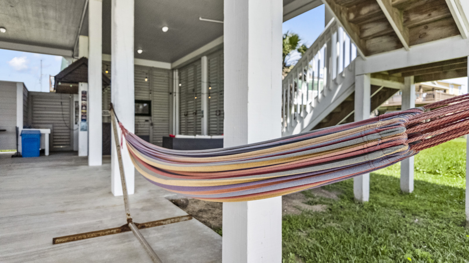 The upstairs deck is pure magic at golden hour, your seat to those unforgettable coastal sunsets. Downstairs, the shaded hangout space becomes your go-to spot during the day, with swings, seating, and plenty of room to relax, play, or just enjoy the breeze.