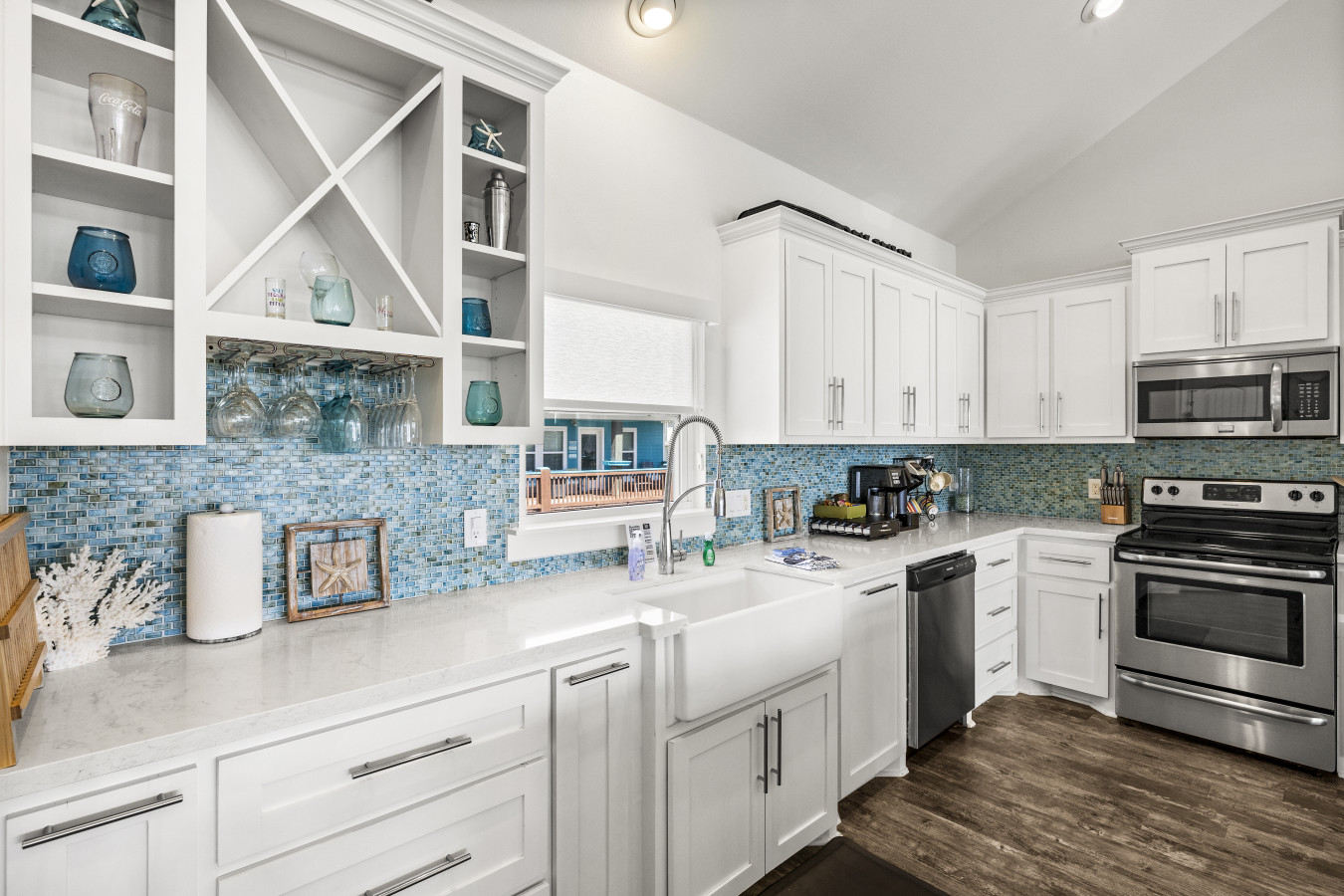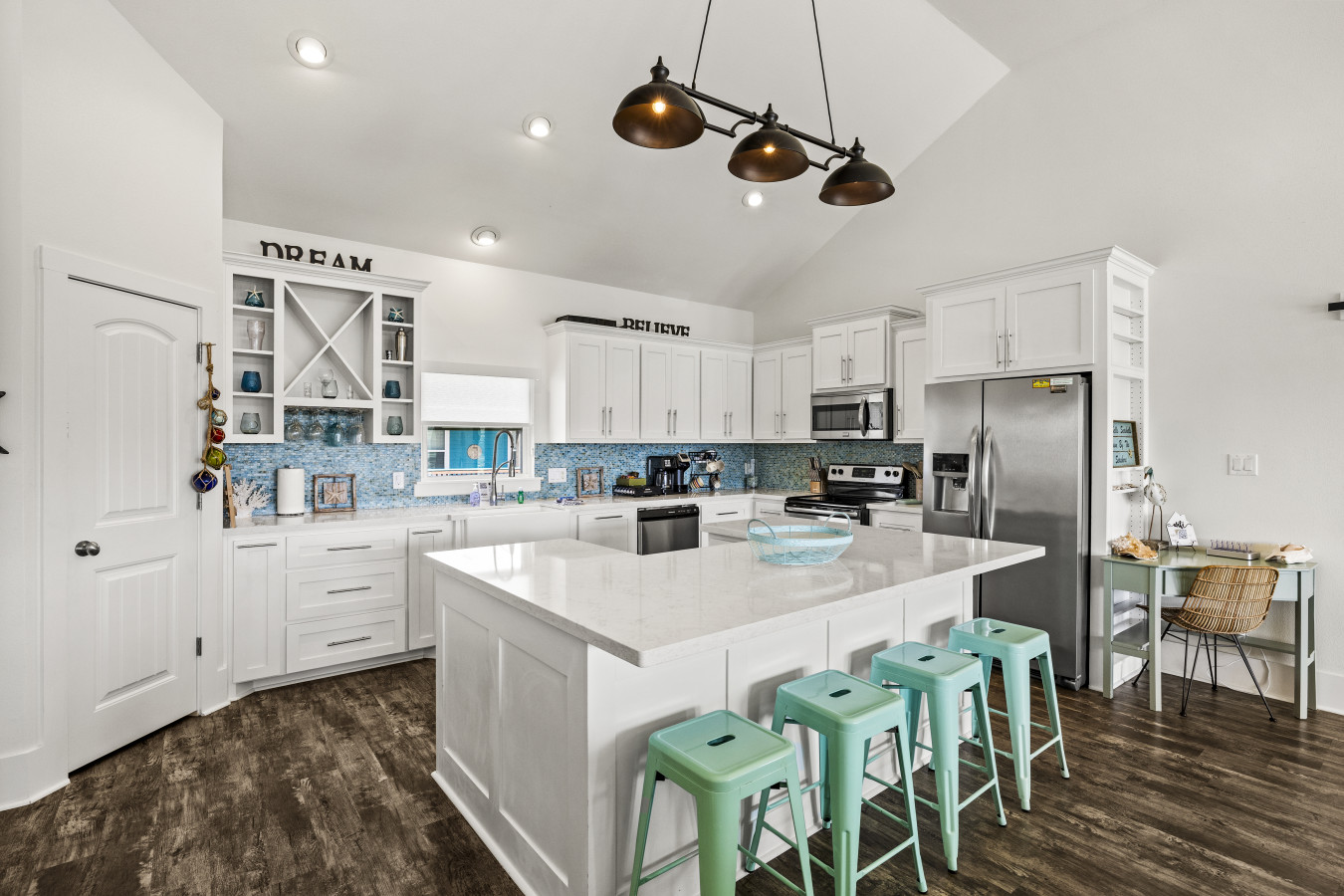 The kitchen is fully equipped and ready for everything from quick breakfasts before the beach to full dinners with your group. Whether you’re cooking or just snacking, everything feels easy here.