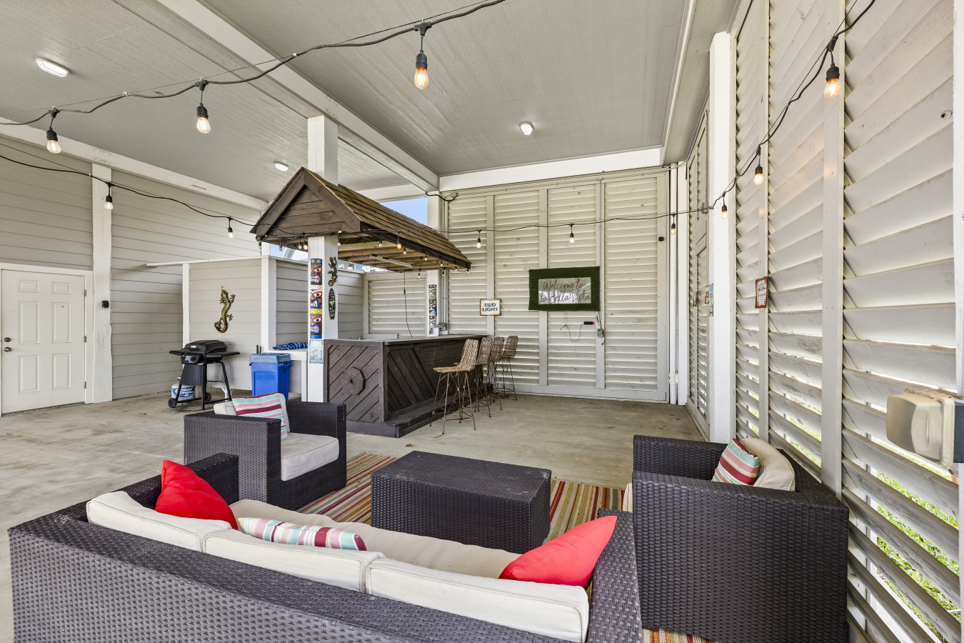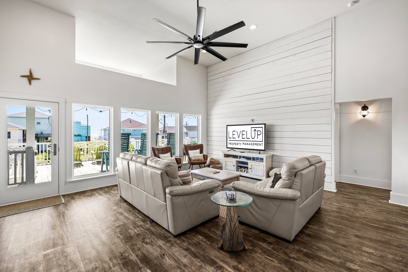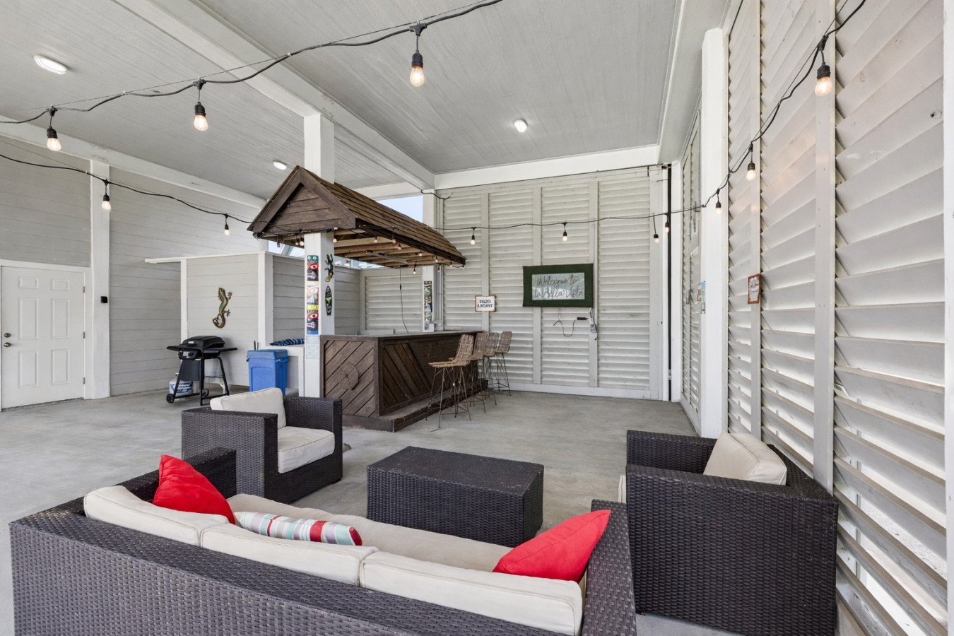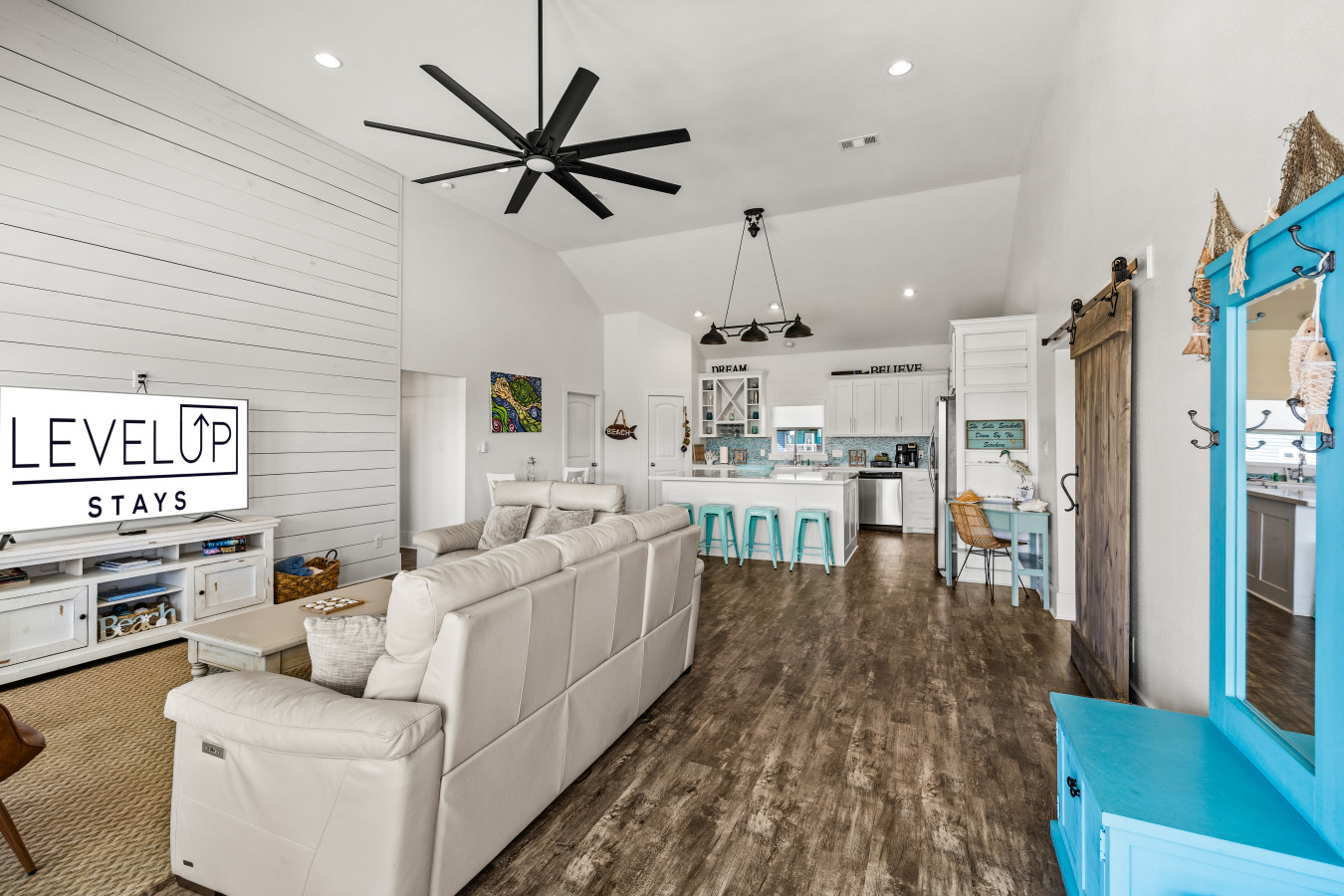 This spacious, light-filled beach home is designed for gathering, relaxing, and soaking in that effortless coastal energy. With an open-concept layout, breezy interiors, and multiple outdoor hangout spaces, it’s the kind of place where mornings start slow and nights end under glowing string lights.