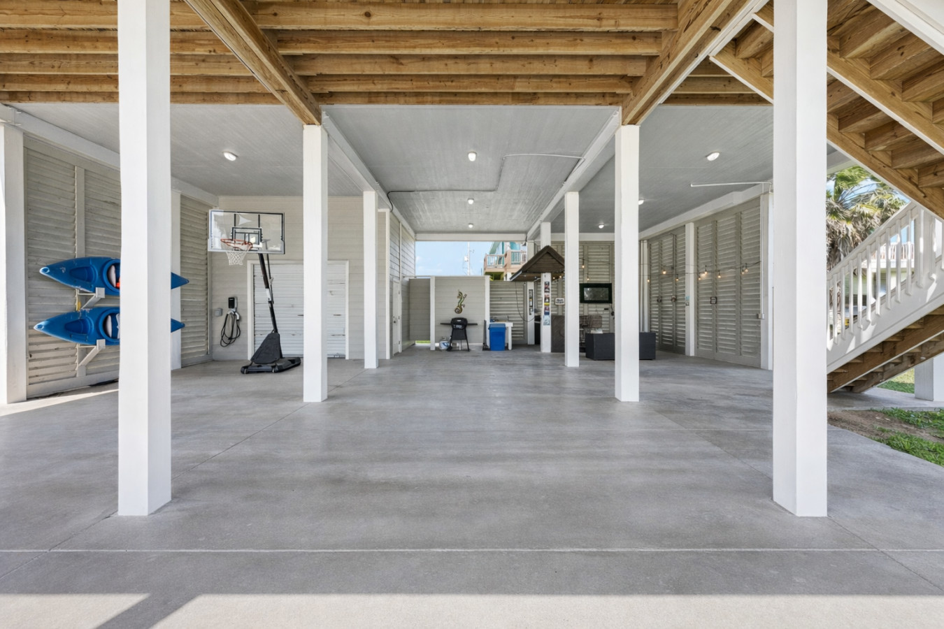The upstairs deck is pure magic at golden hour, your seat to those unforgettable coastal sunsets. Downstairs, the shaded hangout space becomes your go-to spot during the day, with swings, seating, and plenty of room to relax, play, or just enjoy the breeze. This home also has an EV charger!