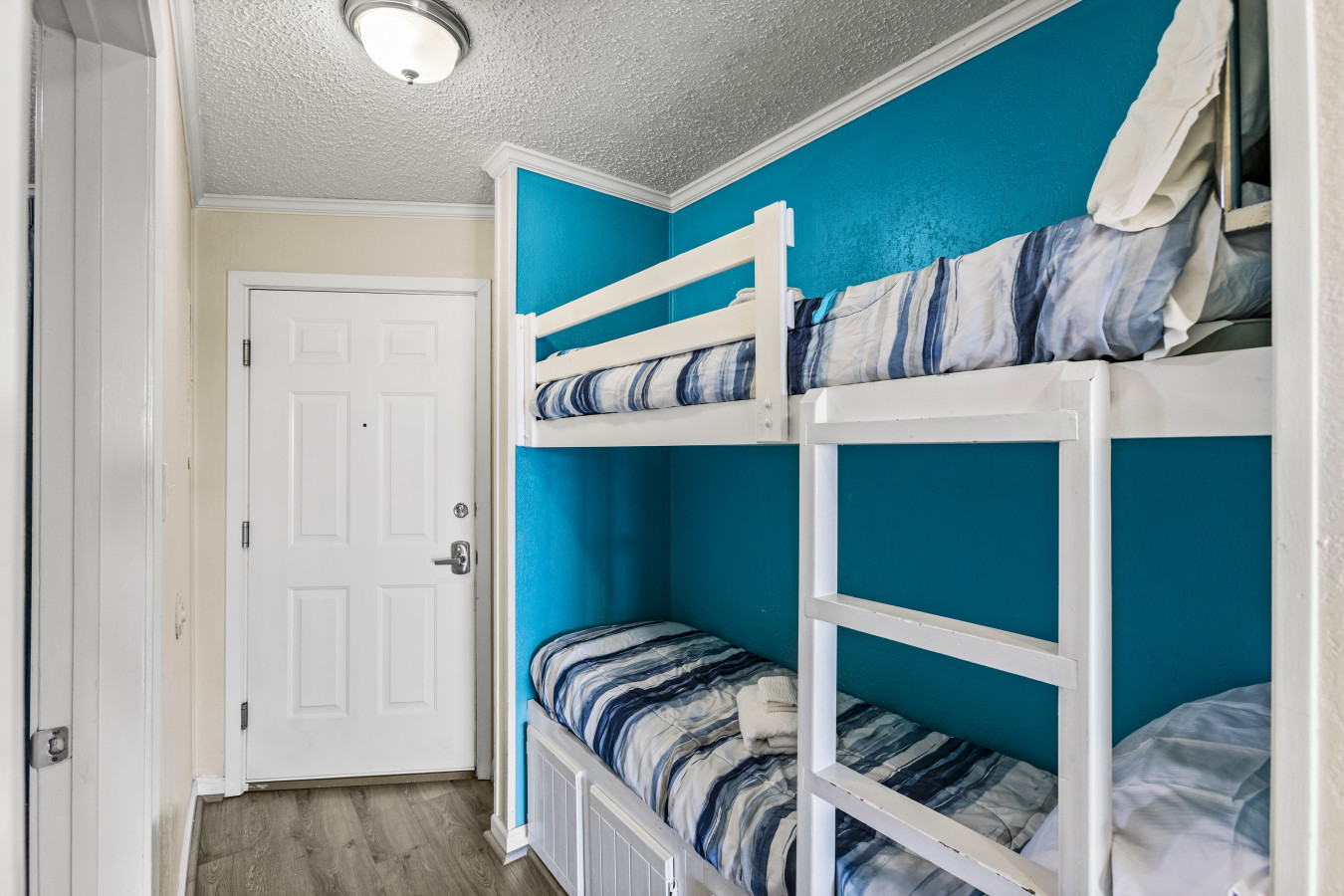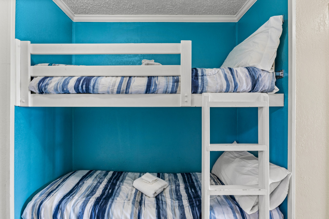 Two twin bunk beds (please note these are intended for kids or small adults — they are not full-sized twin bunk beds)
