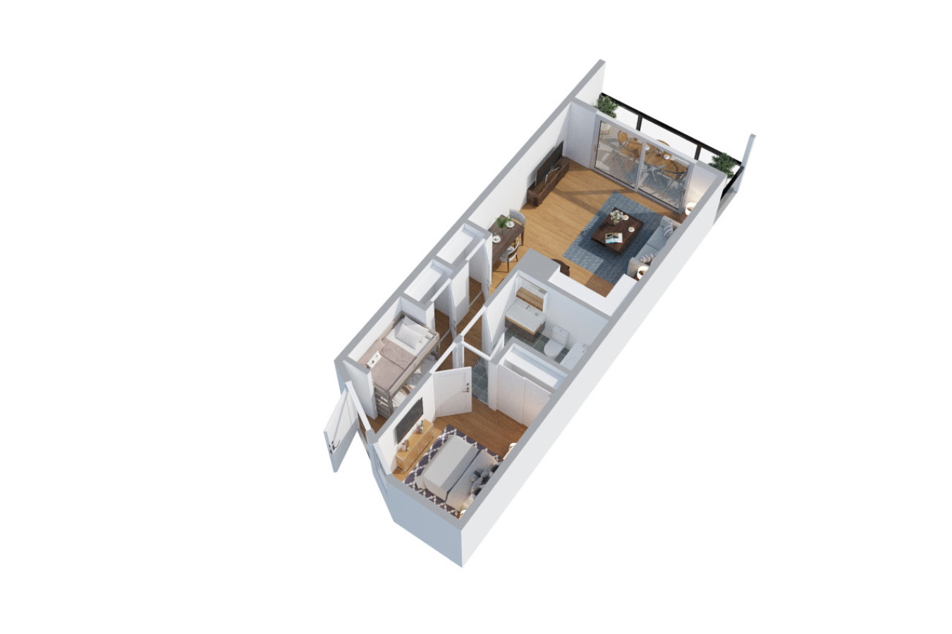Inside, you’ll find a fully equipped kitchen for all your cooking needs, TVs in both the living room and bedroom, and a coffee maker stocked with coffee pods to start your mornings right. The living area features a dining table for shared meals and bunk beds to accommodate extra guests comfortably.