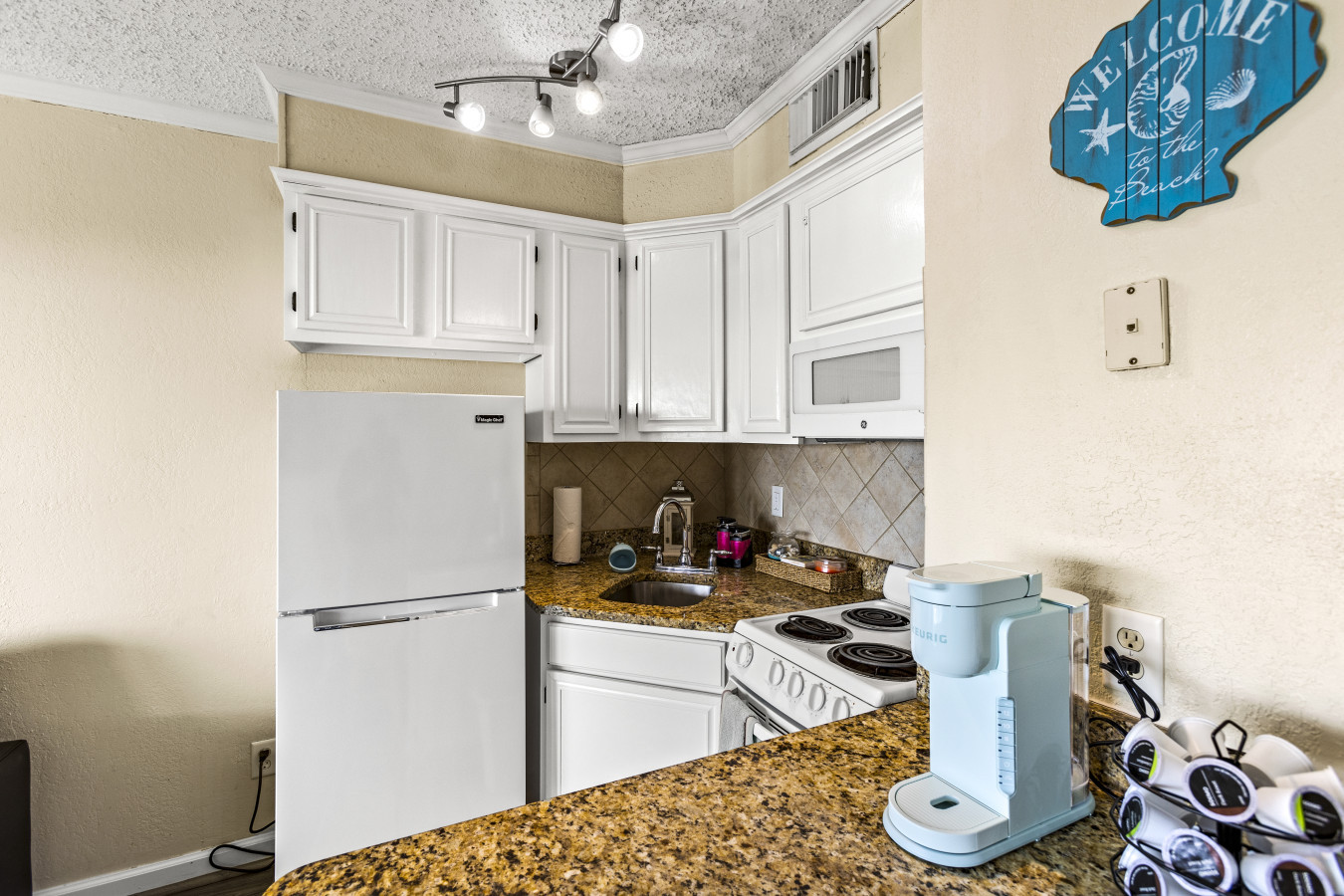 Welcome to Azure Retreat, a charming 1-bedroom, 1-bathroom condominium in the heart of Galveston. This cozy getaway offers the perfect blend of comfort and convenience, making it an ideal choice for couples, small families, or groups.