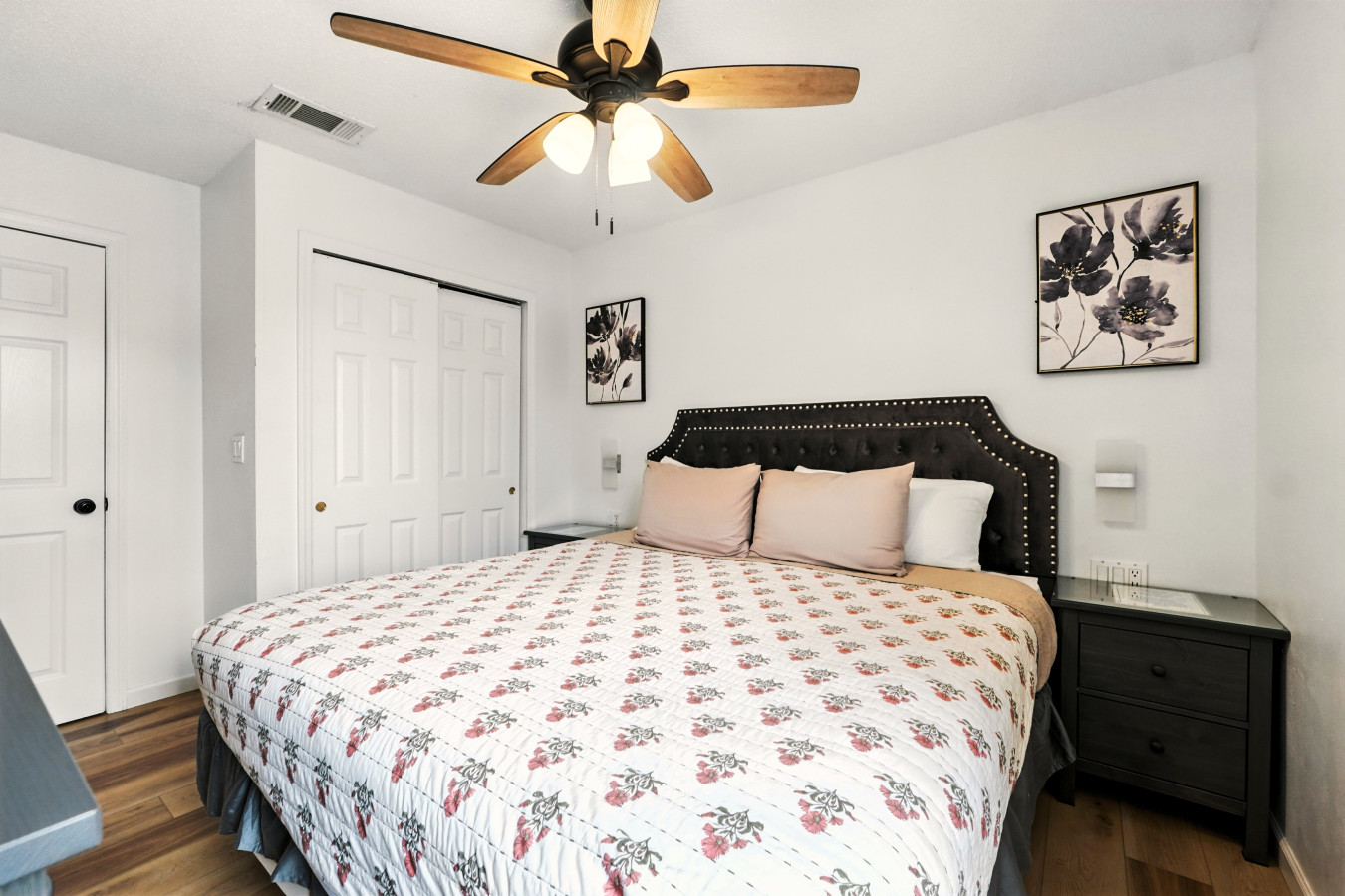 Primary Bedroom (Upstairs): King bed with walk-in closet and en-suite bath – sleeps 2