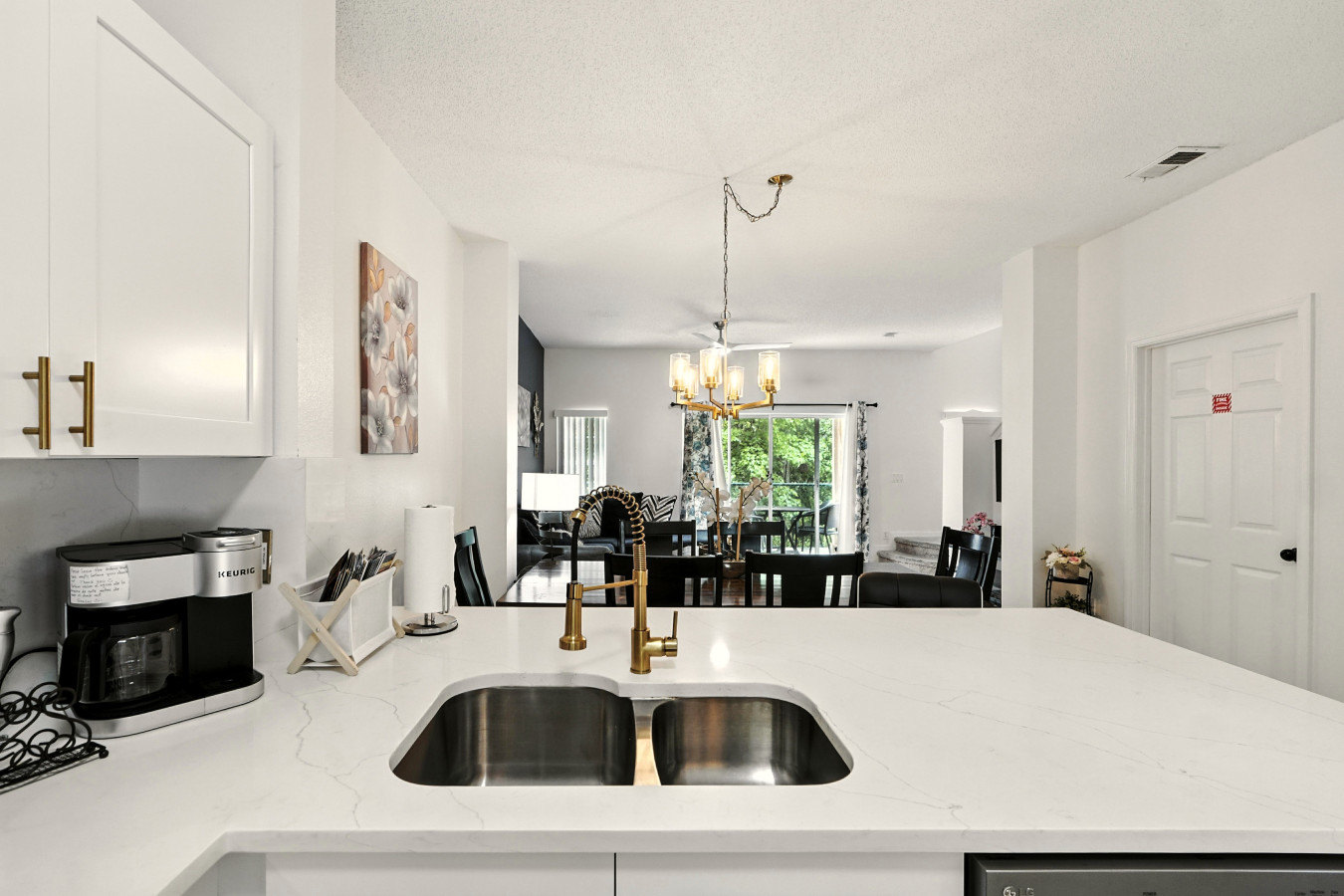 Step into this elegant two-story home and enjoy an open-concept living space that blends comfort with style. The living room and dining area offer the perfect spot to unwind after a fun day out. The fully equipped kitchen includes everything you need to cook—from morning coffee to homemade dinners—with stainless steel appliances, a microwave, and a dishwasher.