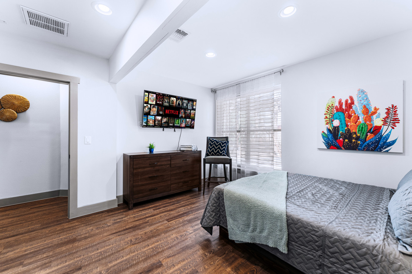 Step inside the Mesquite Suite and be greeted by a thoughtfully designed space that blends comfort and style. The suite features two cozy bedrooms, each with plush bedding and large Smart TVs for your entertainment. The full bathroom includes a tub—perfect for a soothing soak after a day of exploring Boerne’s shops, breweries, and scenic trails.