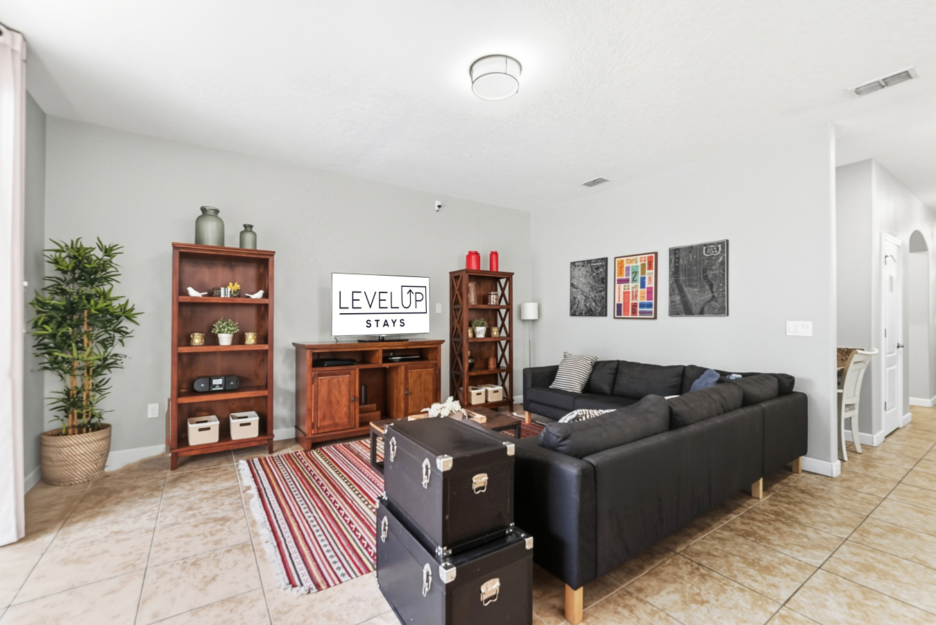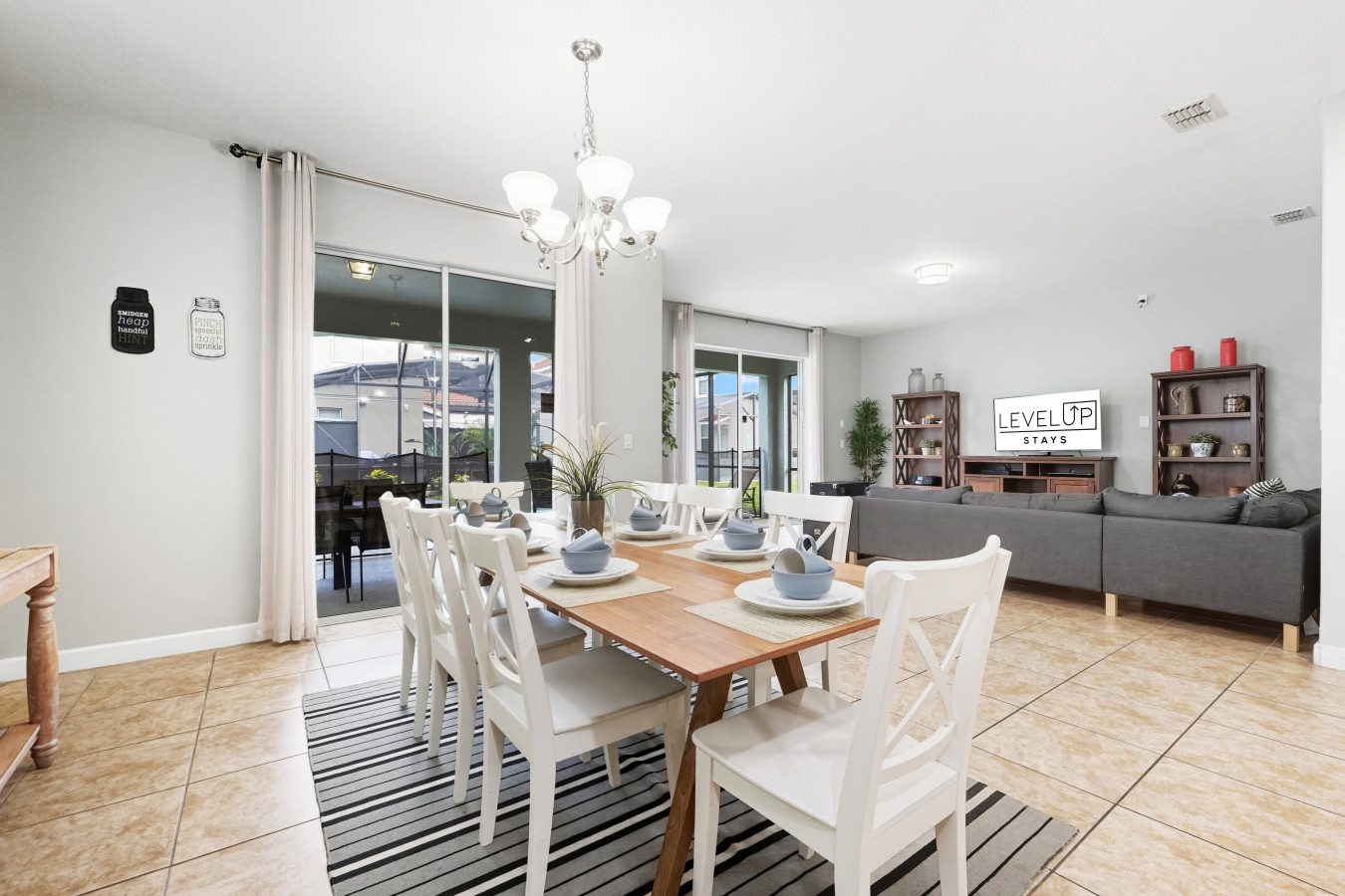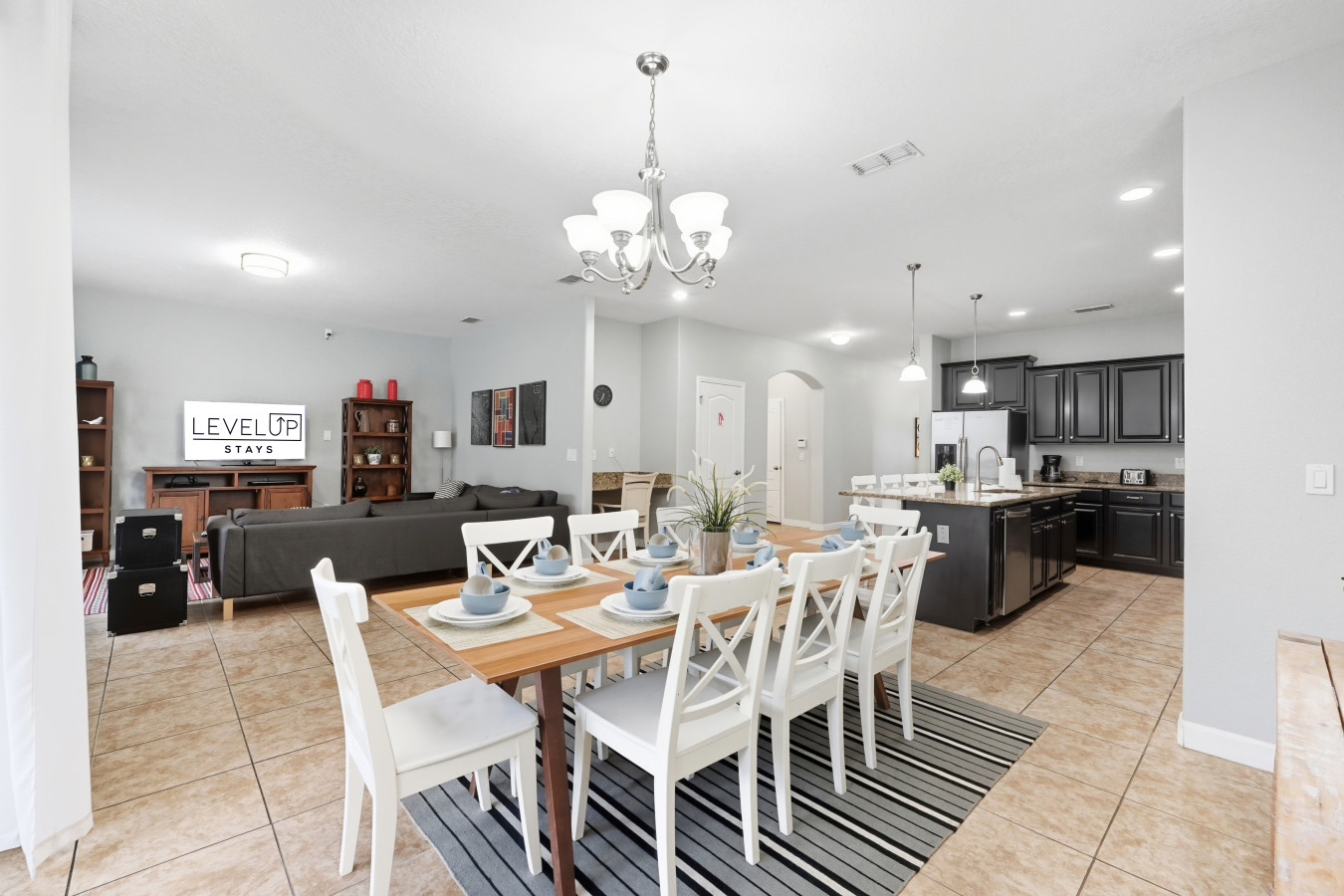 • Two living rooms (one upstairs, one downstairs) giving you flexibility for kids, parents, or groups.