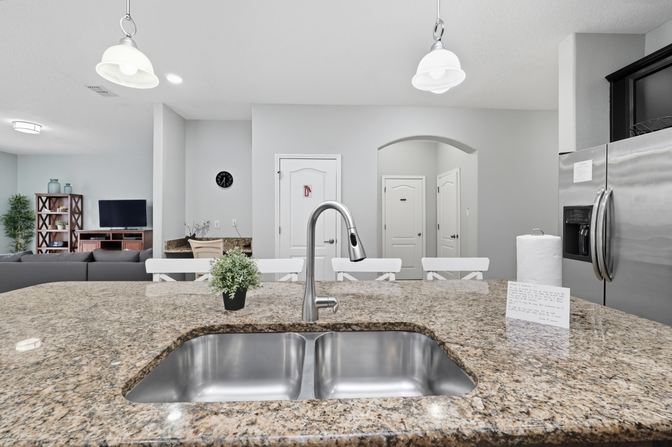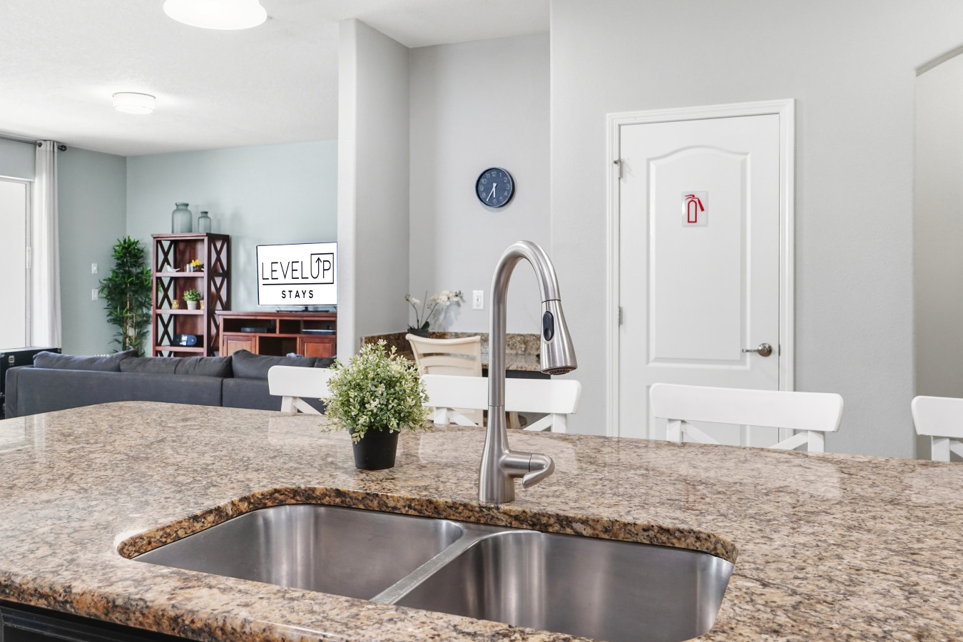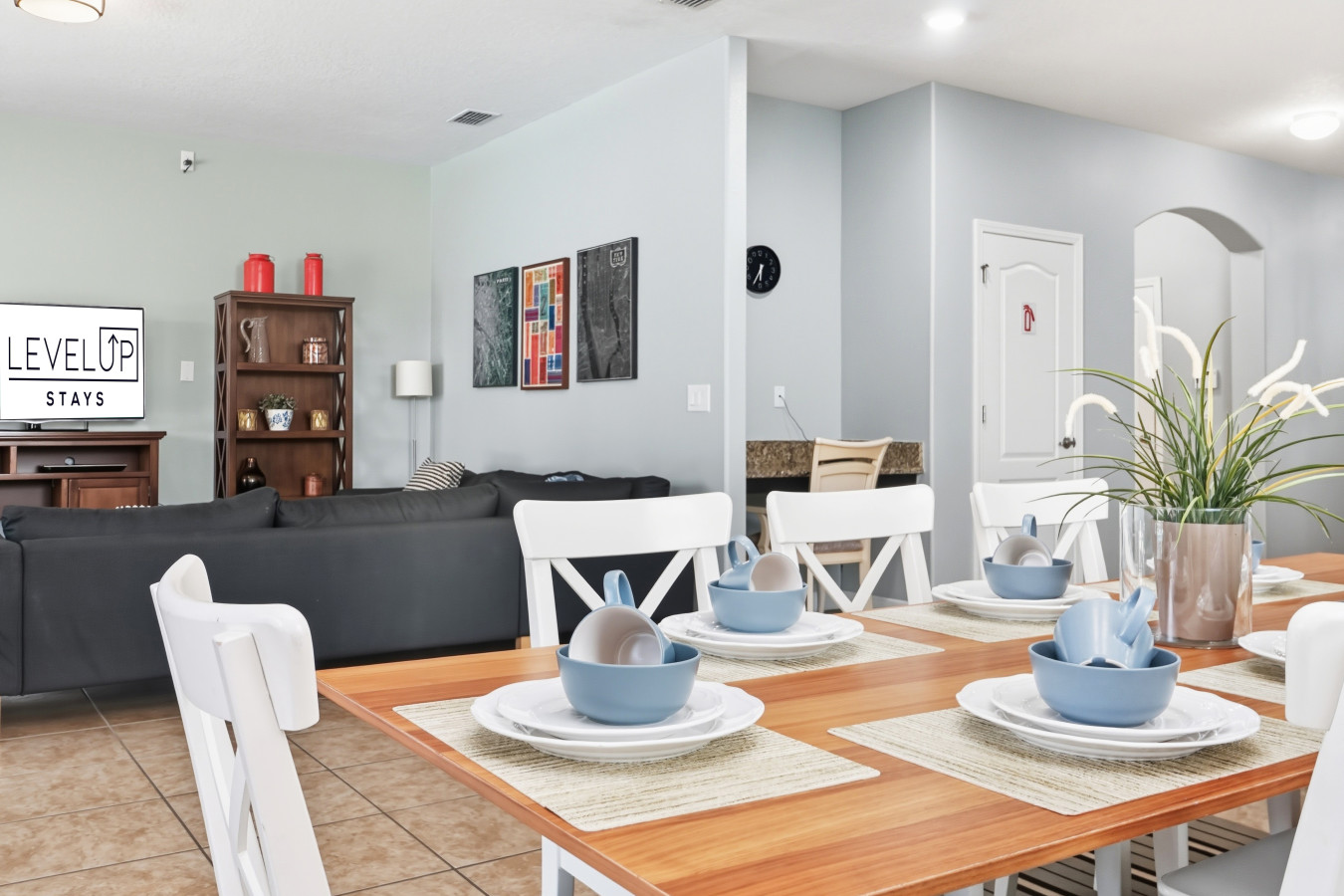 • Two living rooms (one upstairs, one downstairs) giving you flexibility for kids, parents, or groups.