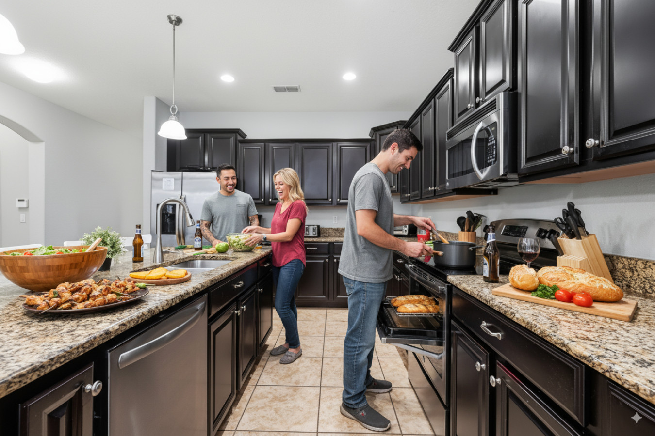 • Fully equipped kitchen + open dining/living space where everyone can gather, cook, eat, and laugh together.