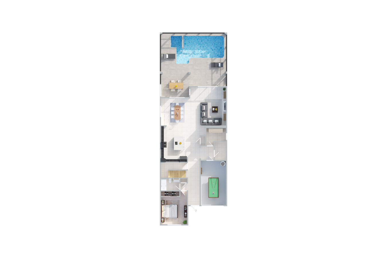 • Access to resort amenities: clubhouse, fitness center, movie theater, sports courts, tiki bar, and more (you get that resort-feel without leaving home).