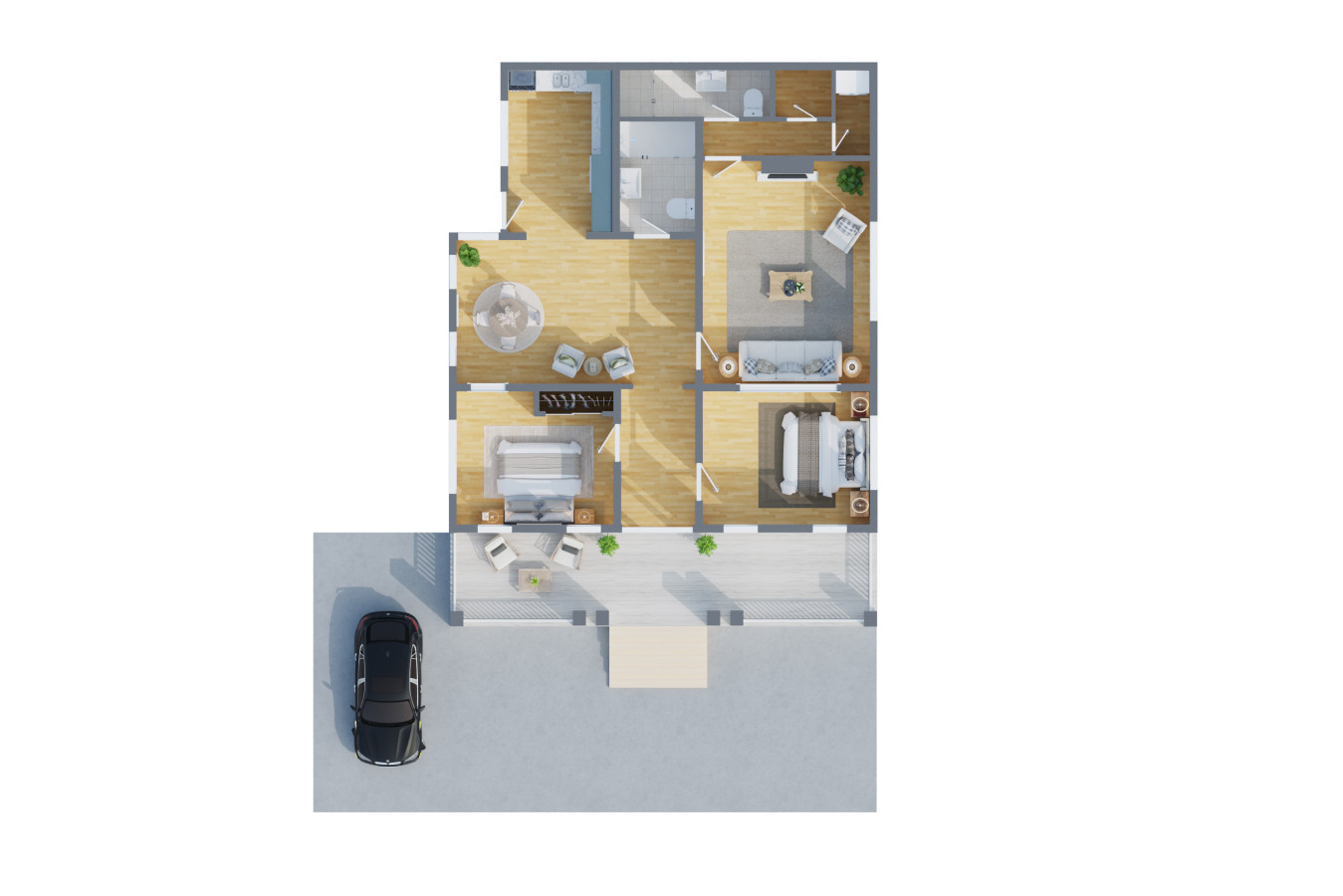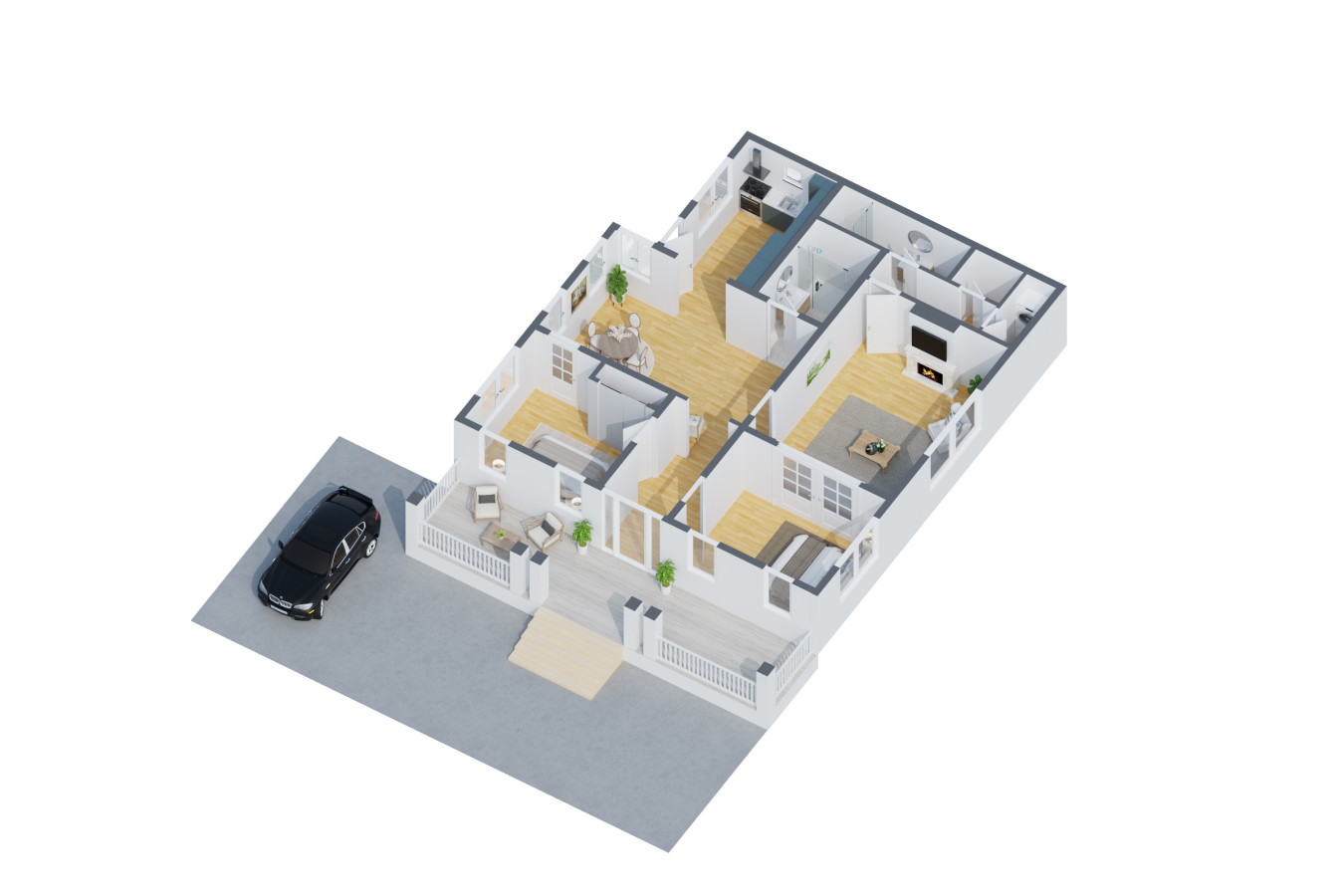 The kitchen is clean, modern, and ready for anything from a quick breakfast to a full dinner at home. When it’s time to unwind, you’ll have two private bedrooms plus a sofa bed in the living room, making it easy for couples, friends, or a small family to settle in comfortably. Two full bathrooms add that extra layer of convenience, especially when you’re getting ready to head out.