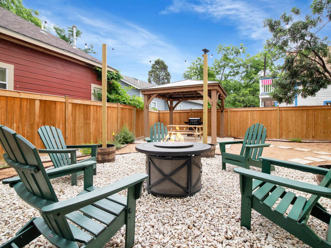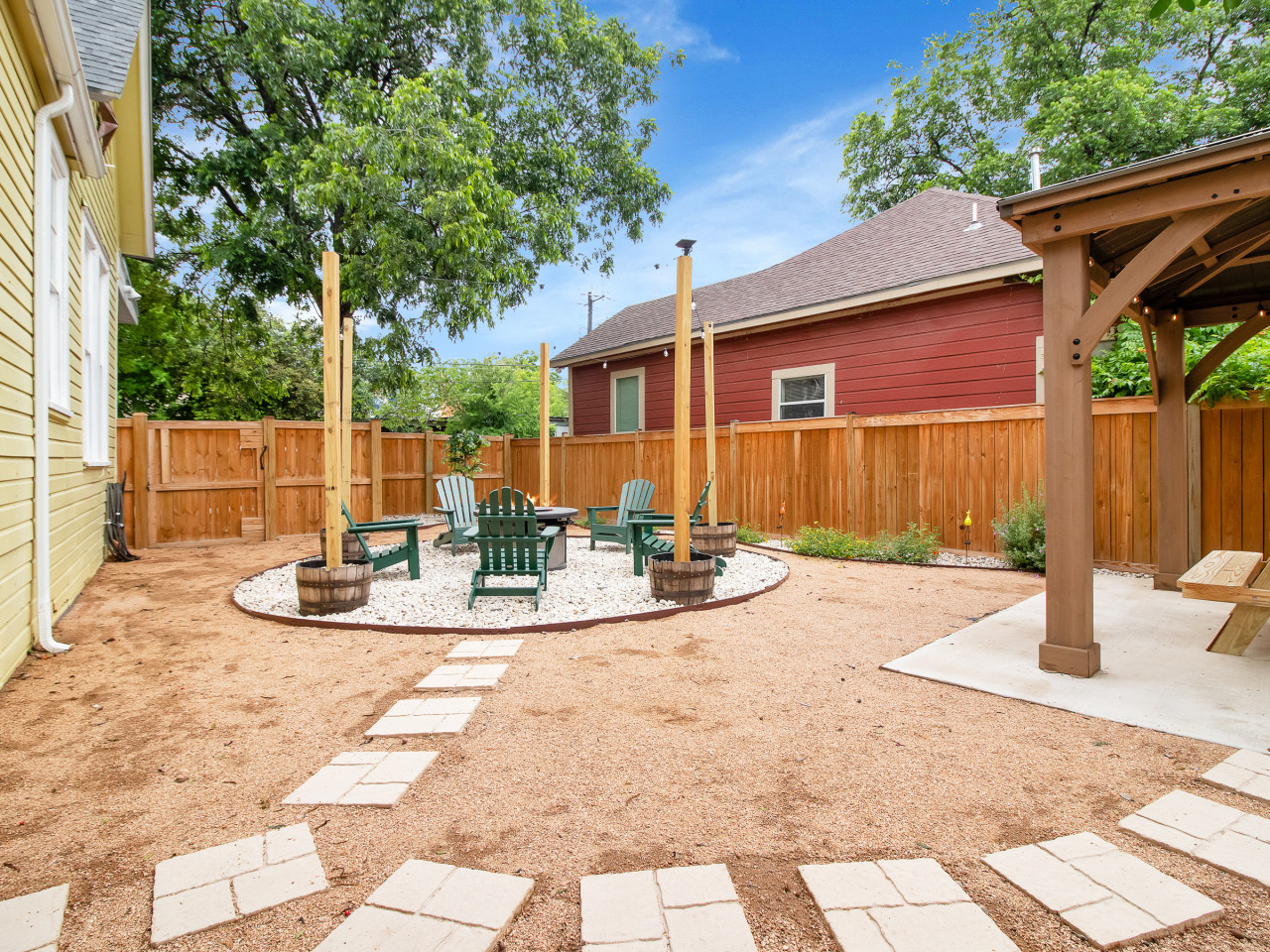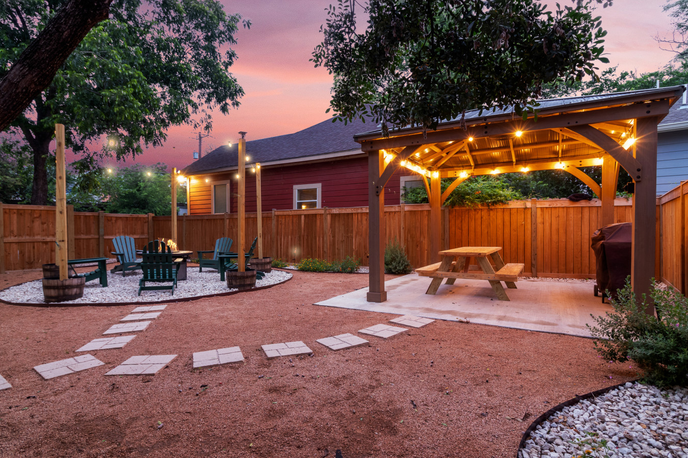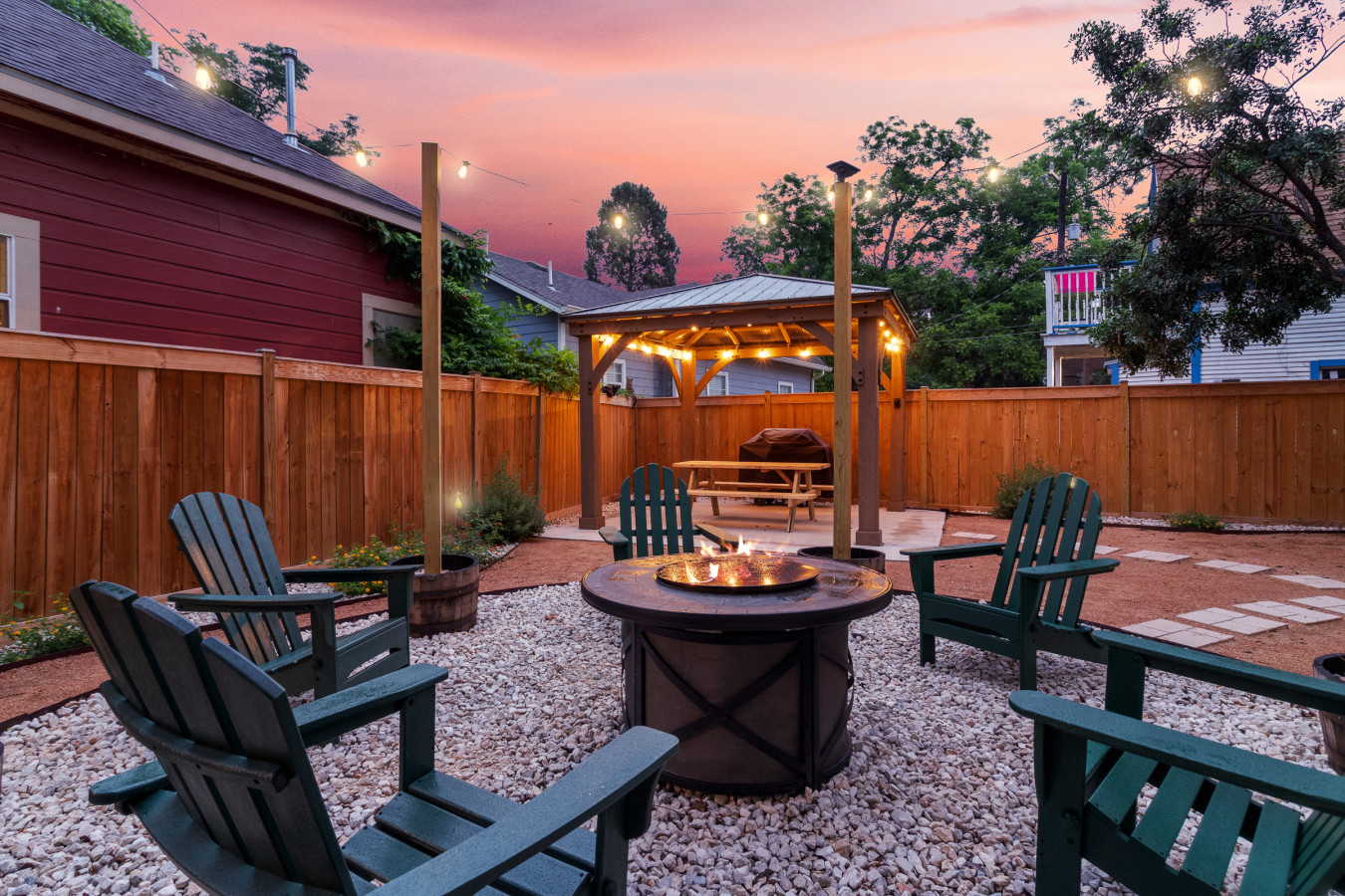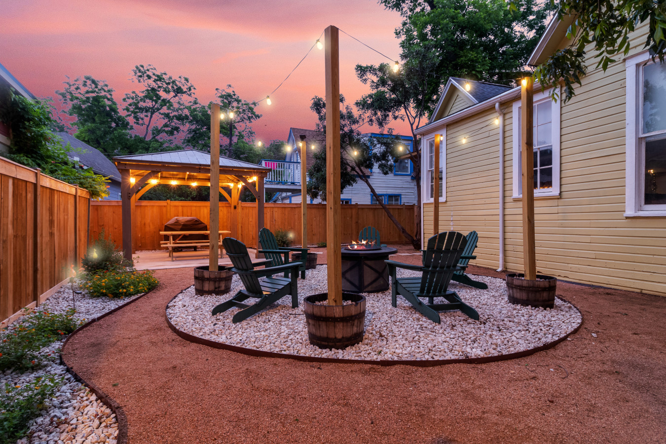 • A backyard made for evenings: Fire pit gatherings, grill nights, and cozy patio seating for slow, memorable moments.