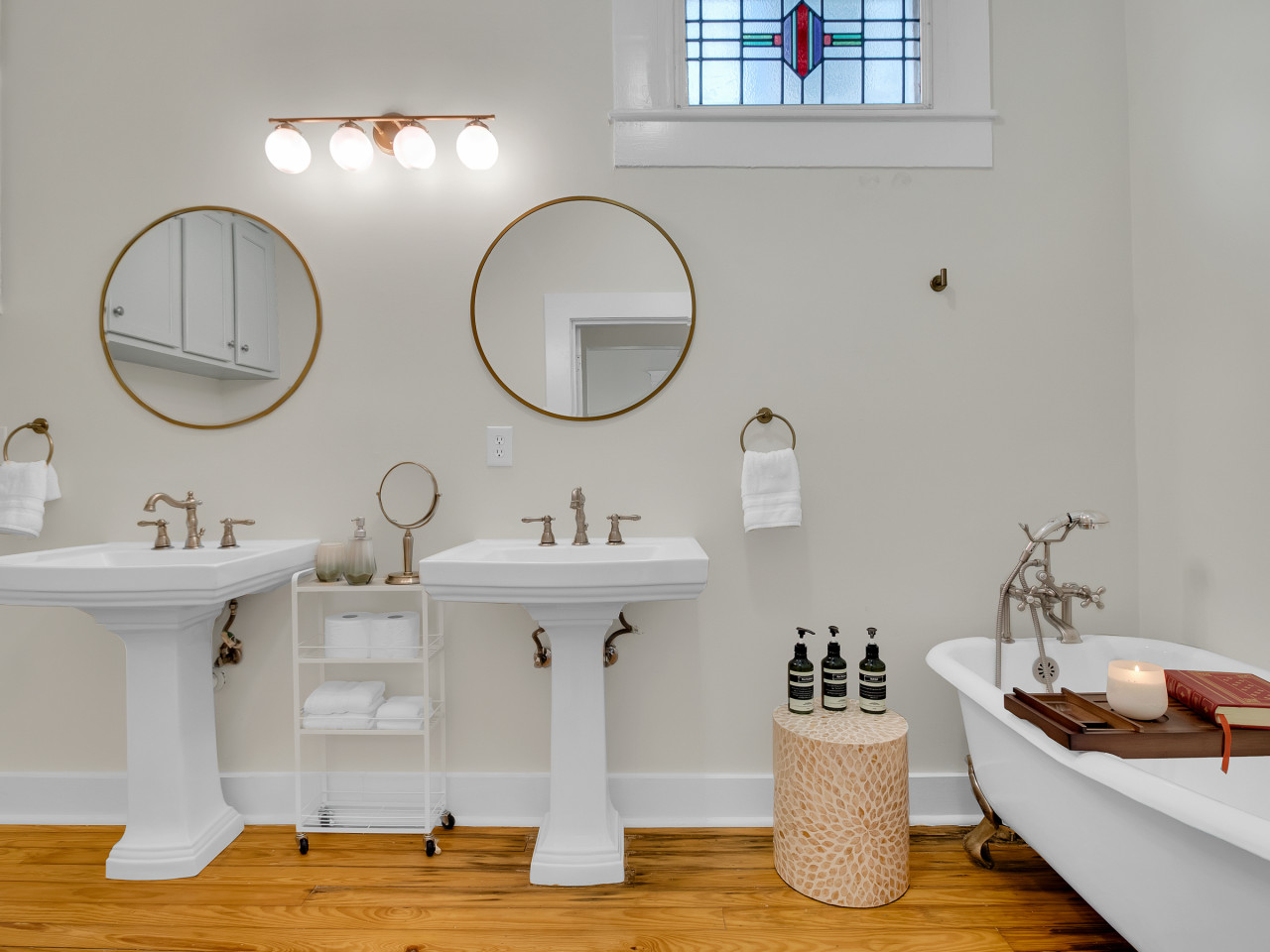 • Two full bathrooms: One with a soaking tub, double-sink setup and another with a walk in shower.