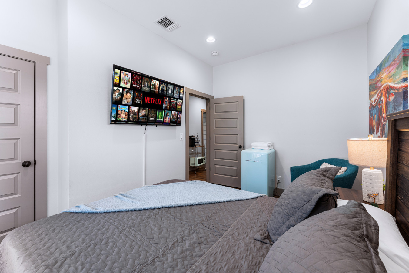 •Relaxation & Entertainment – Large Smart TVs in every room, a gathering area upstairs with ice and filtered water, and rocking chairs on the front porch (shared space)