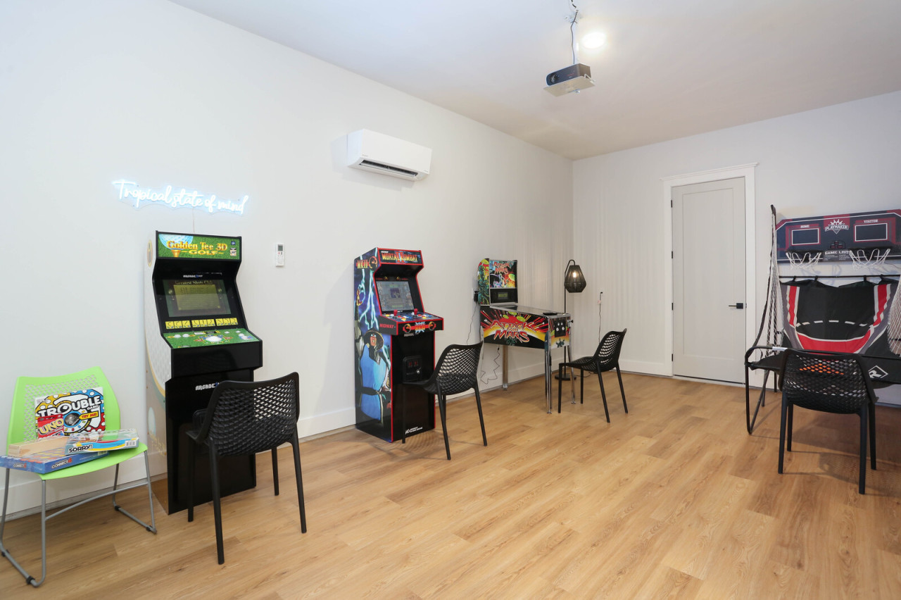 • Full arcade game room with 120 inch projector TV screen