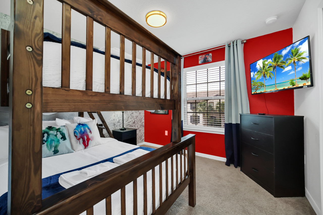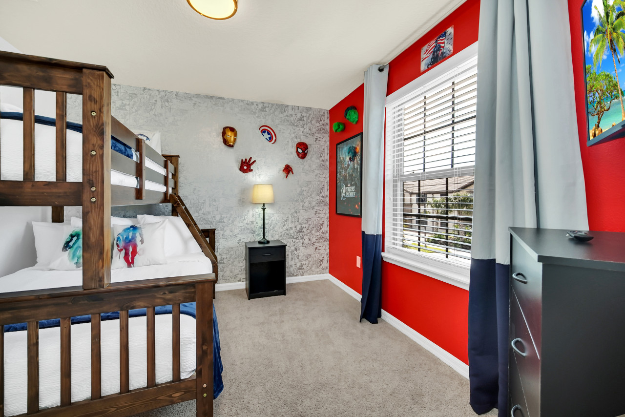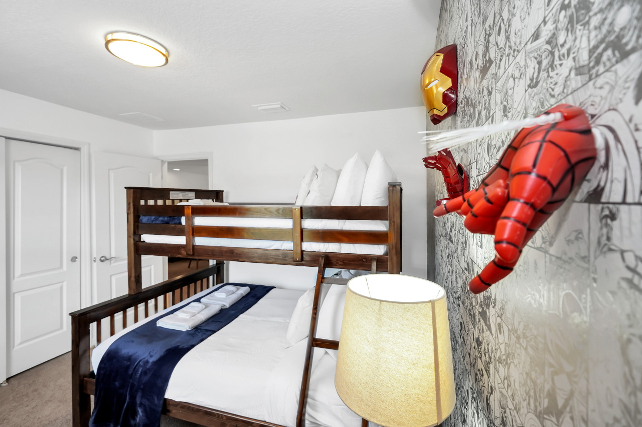 • Bedroom #4 – Marvel’s Themed Room: A Twin over Full Bunk Bed awaits the young adventurers, complete with a large flatscreen TV
