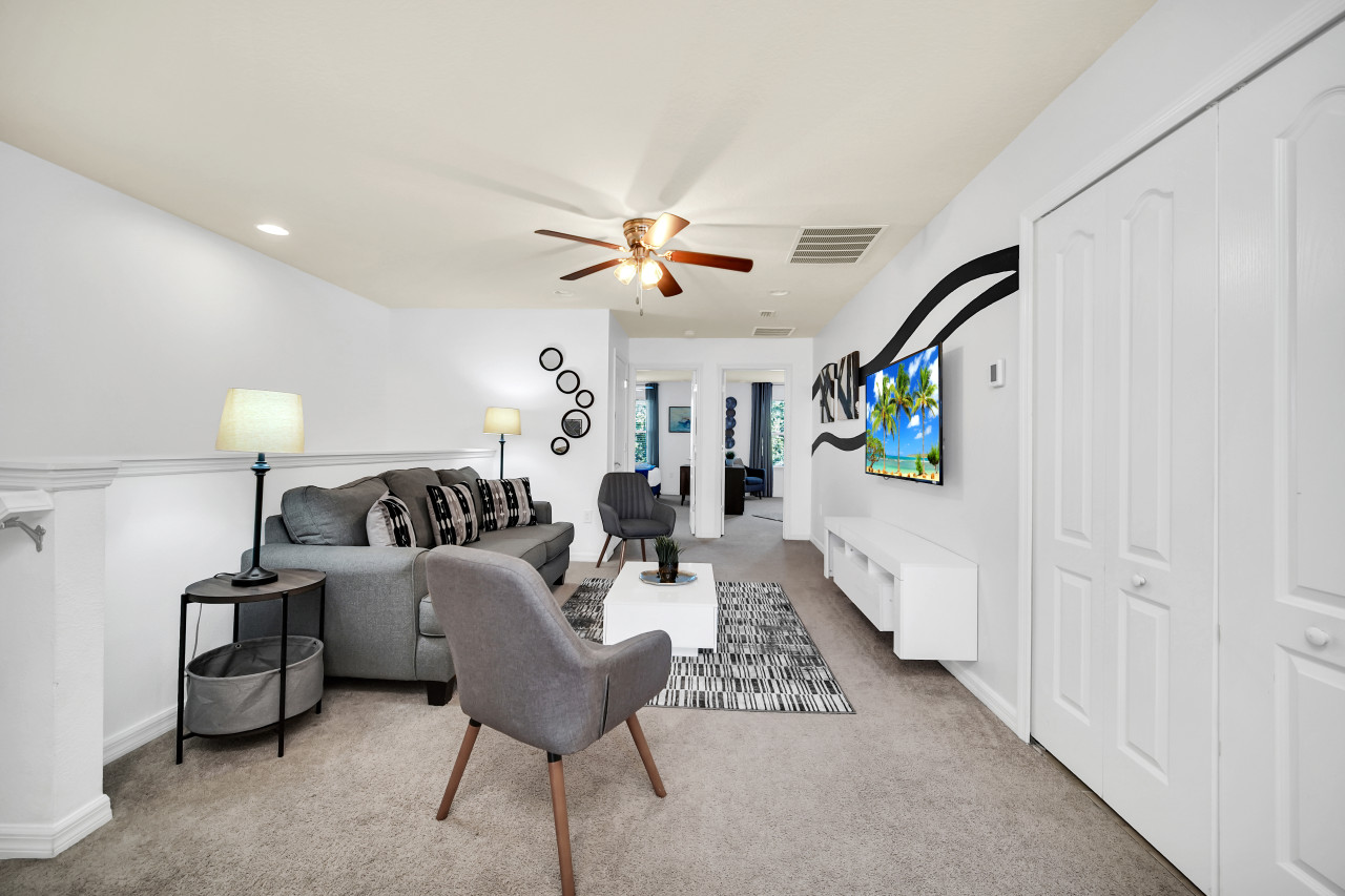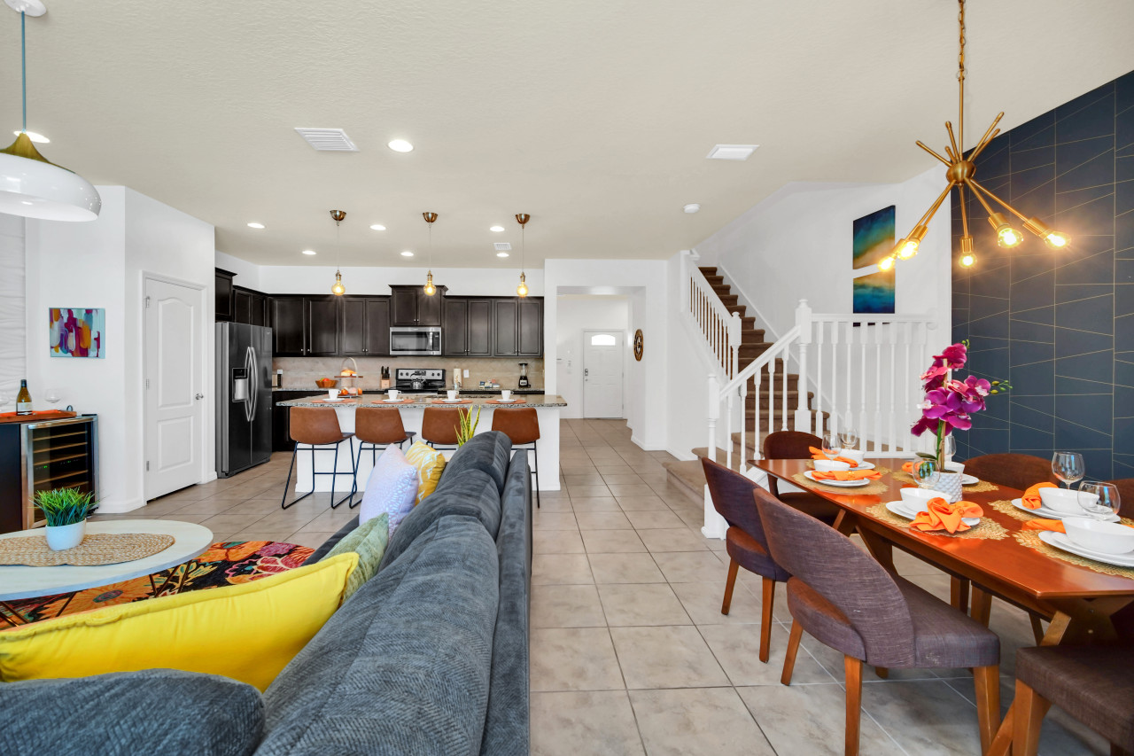 Welcome to 'Colorful Oasis,' your haven of joy in Kissimmee, FL! This 5-bedroom, 4.5-bathroom townhome sleeps 14, nestled in the secure Windsor at Westside community, invites families to a magical retreat. Themed bedrooms like Marvel and Nemo delight the little ones. Enjoy resort-style bliss at the 8,000 sq.ft. clubhouse with a pool and water slide. Backing up to a wooded area, this oasis offers privacy, while an optional heated pool ensures year-round comfort. Just 16 minutes from Disney World!