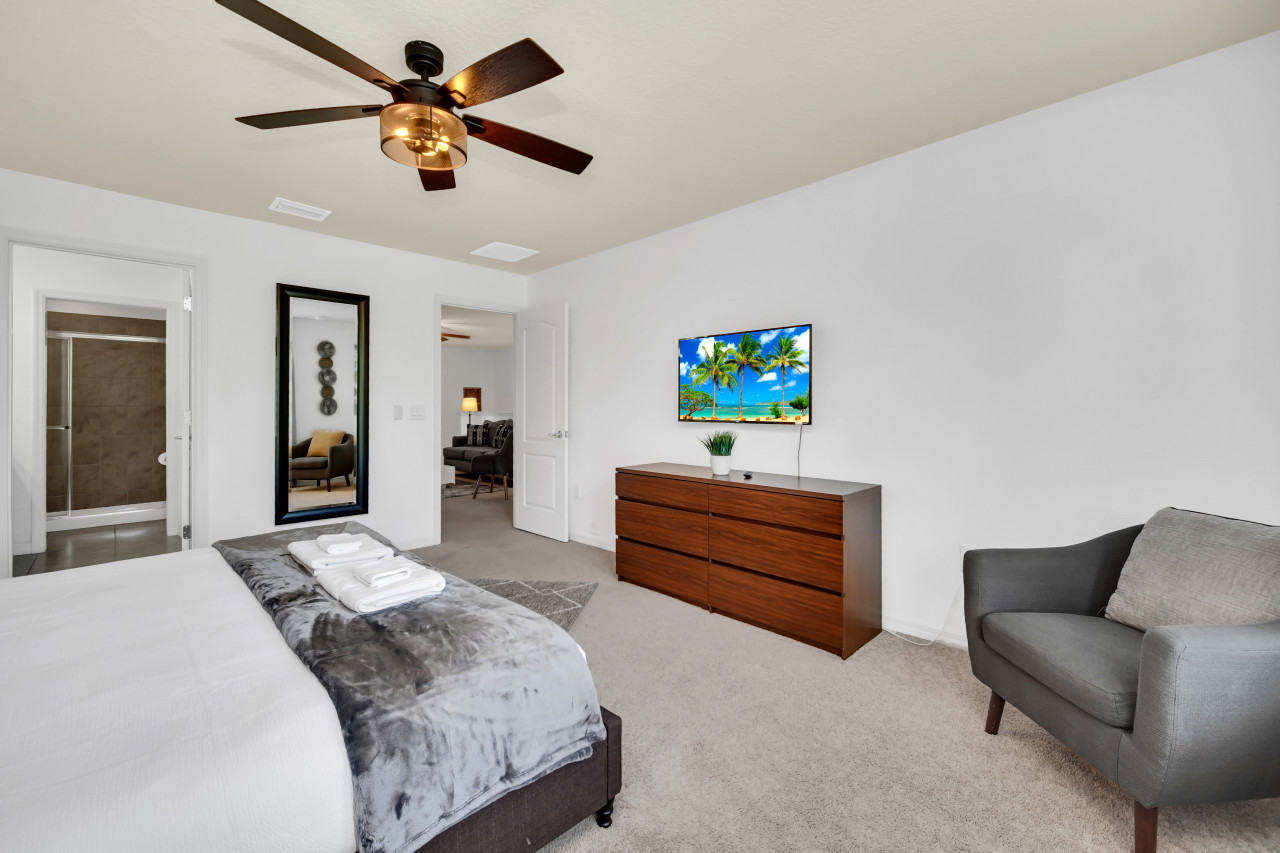 • Bedroom #3 – Master Suite: Indulge in the opulence of the Master Suite, featuring a King bed that promises restful nights