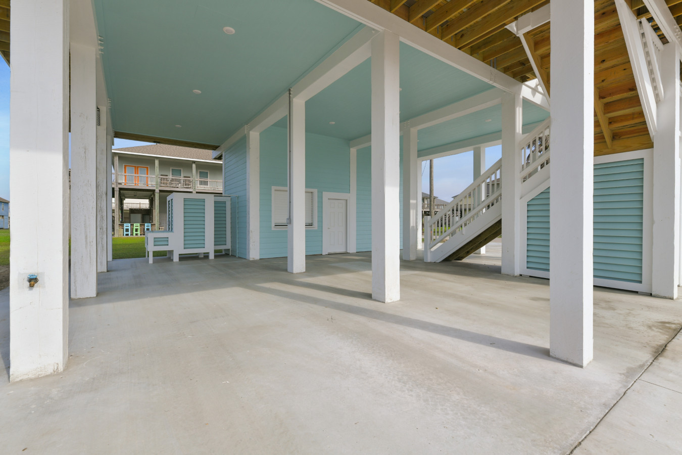 On the ground level, you'll find an enclosed outdoor shower, perfect for rinsing off after a day at the beach, plus a charcoal BBQ pit ready for grilling your catch of the day!