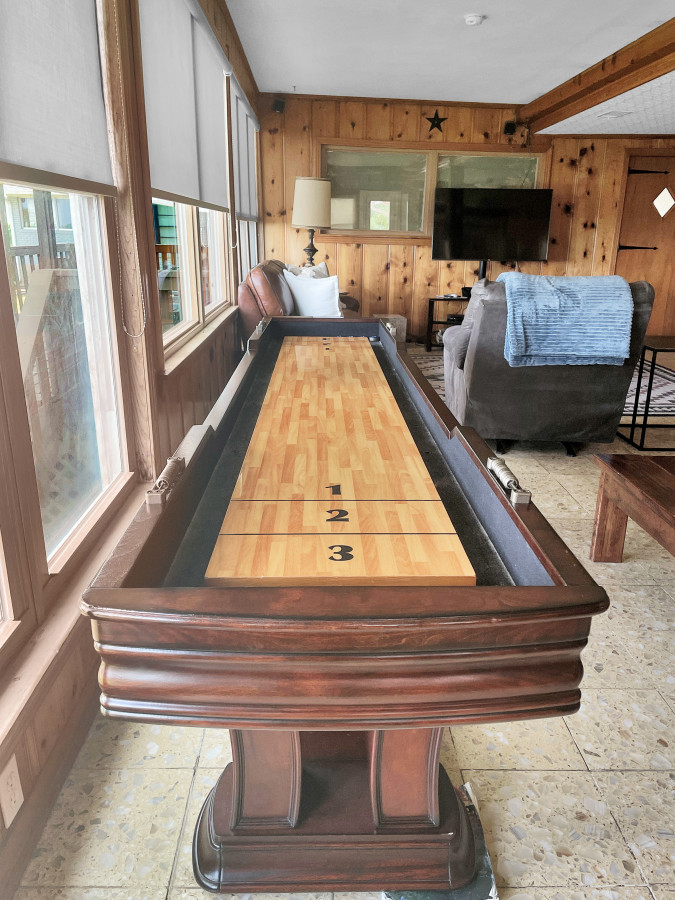 • Firepit for s'mores, ping pong, shuffleboard and Pac Man arcade game
