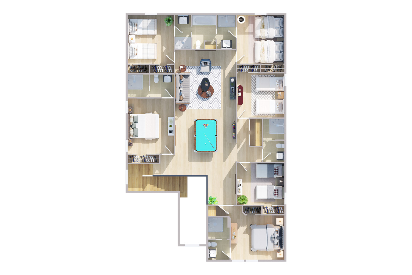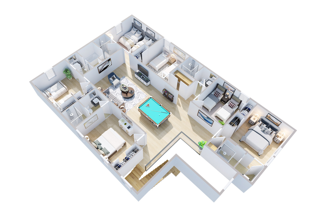 • Game Room Fun – Challenge friends and family with a pool table, poker table, and cozy lounge.
