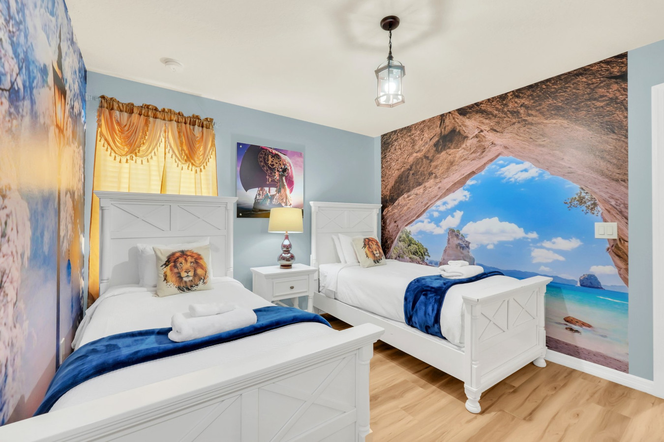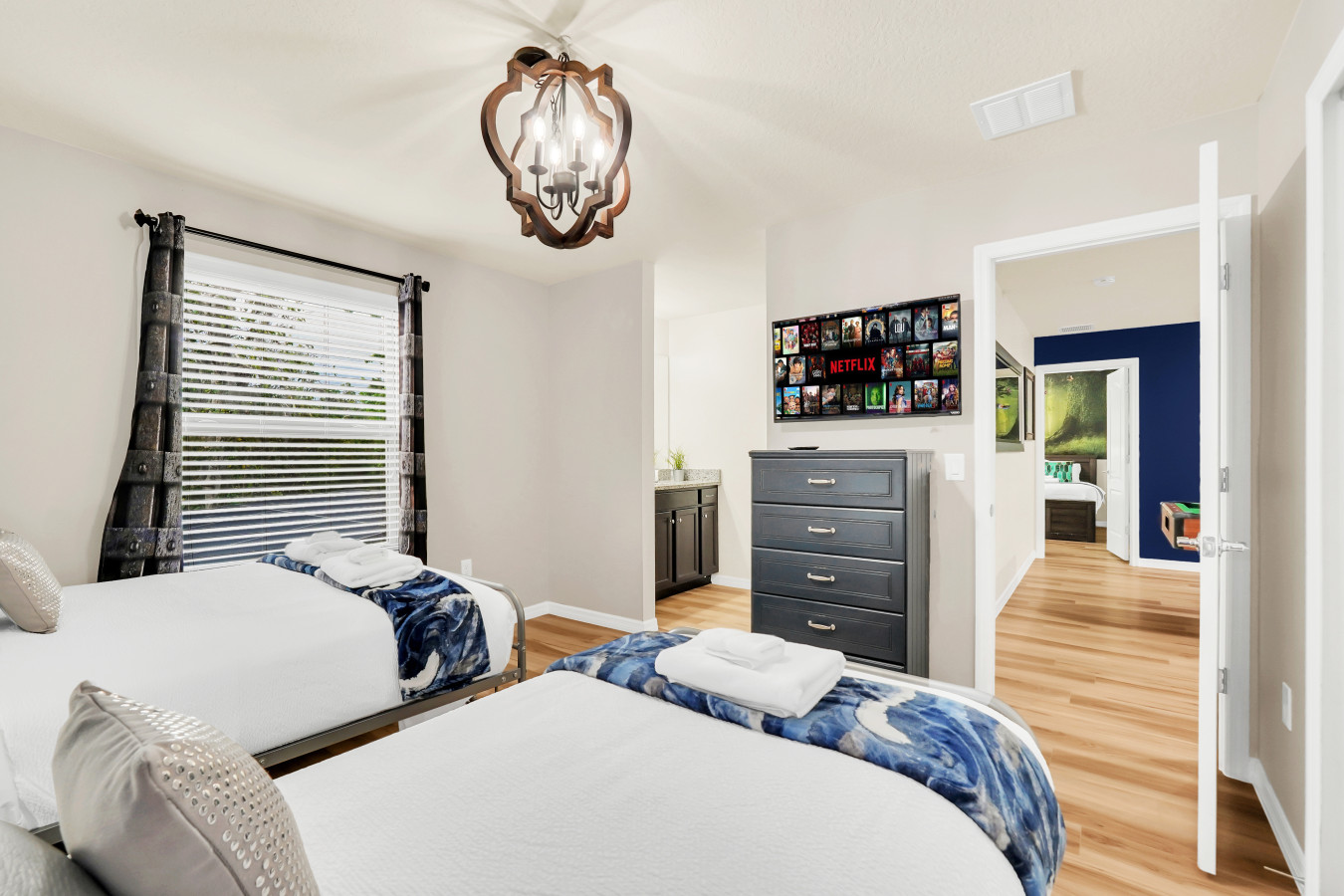 Step into a vacation home designed for adventure, comfort, and unforgettable memories. This 8-bedroom, 6-bathroom retreat blends modern luxury with the magic of the movies, featuring uniquely themed bedrooms inspired by beloved films. Whether you’re soaring through the skies in a "How to Train Your Dragon" adventure room, stepping through the wardrobe into Narnia, or drifting into a dreamy Frozen wonderland, every space has been carefully crafted to transport you to another world. Beyond the themed bedrooms, the home offers sleek and stylish modern décor, an open-concept living area with plush seating, and a state-of-the-art entertainment system—perfect for bringing everyone together after a fun-filled day.