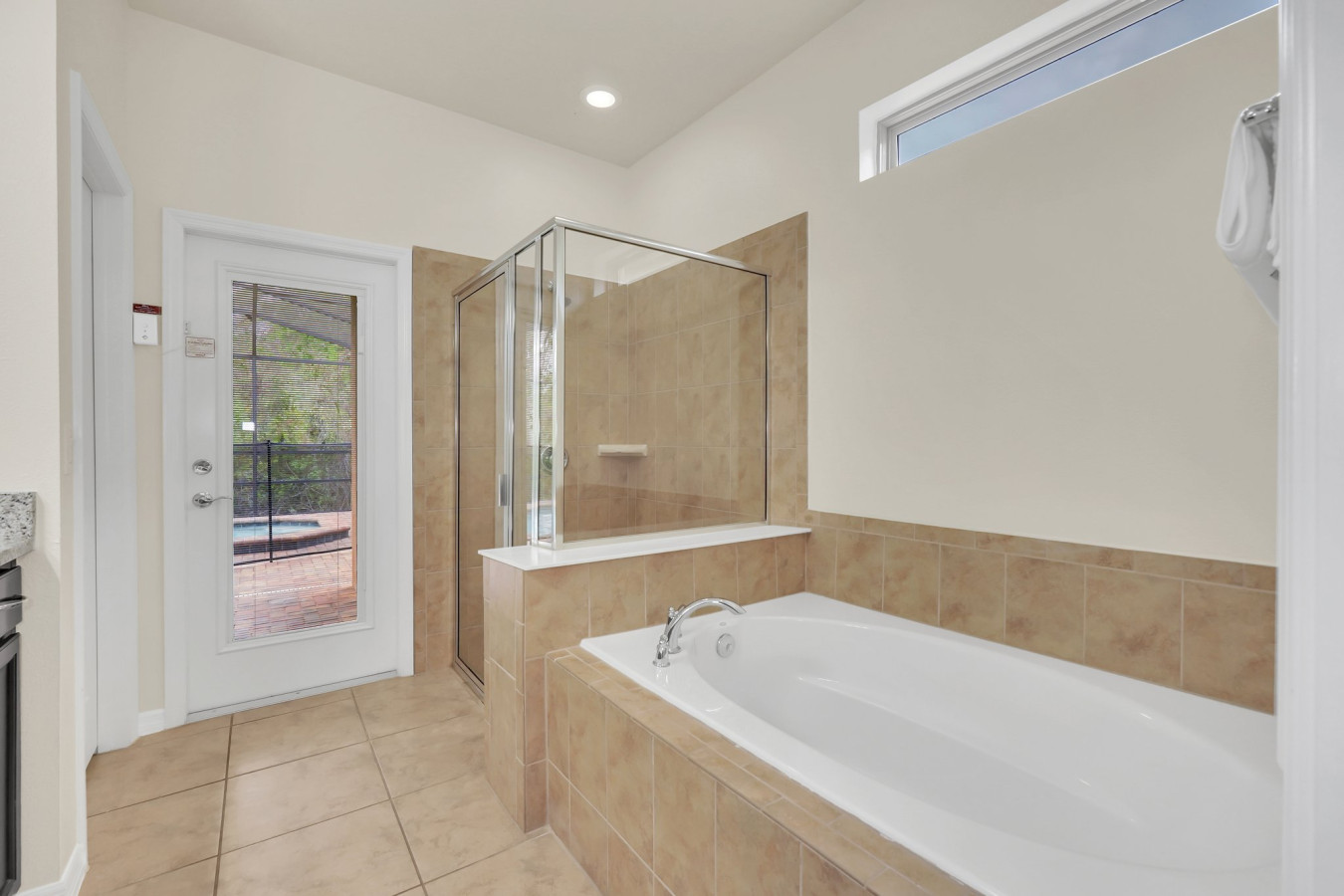 Bathroom #2 – Full bathroom ensuite with bathtub and step-down shower