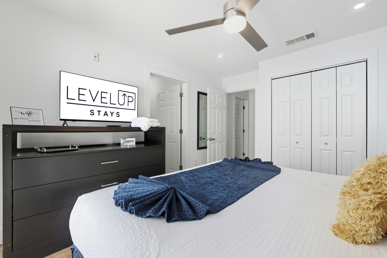 Stay just minutes from Disney in this bright 3BR, 2.5BA townhome in a gated resort community! Relax in the open living area, cook in the fully equipped kitchen, or sip coffee on the private balcony. With direct access to the pool and resort amenities from your patio, plus cozy bedrooms and Smart TVs for everyone, it’s perfect for families or friends. Close to Disney, Universal, shopping & dining—your Florida getaway starts here!