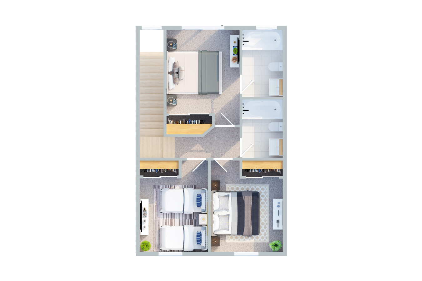 The bedrooms are thoughtfully arranged: the master suite offers privacy and comfort; the second bedroom with a queen bed is cozy for couples; the third bedroom with two single beds is ideal for kids or friends. Multiple bathrooms make getting ready smooth without waiting.