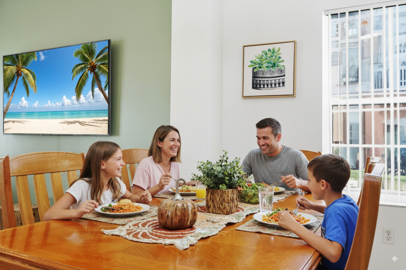 • Entertainment for All: Smart TVs in every bedroom and the living room for movie nights and downtime.